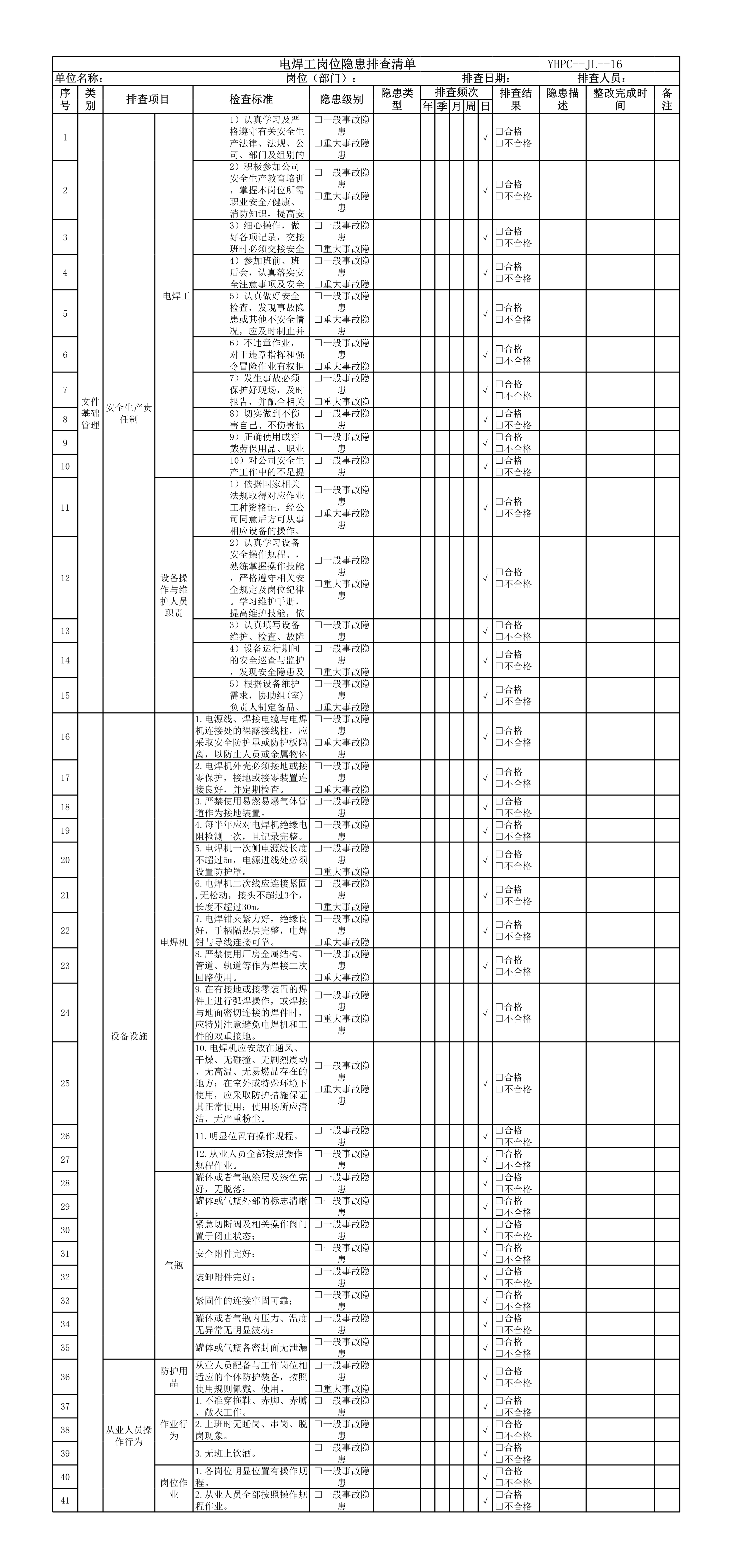 / 电焊工岗位隐患排查清单[表格]