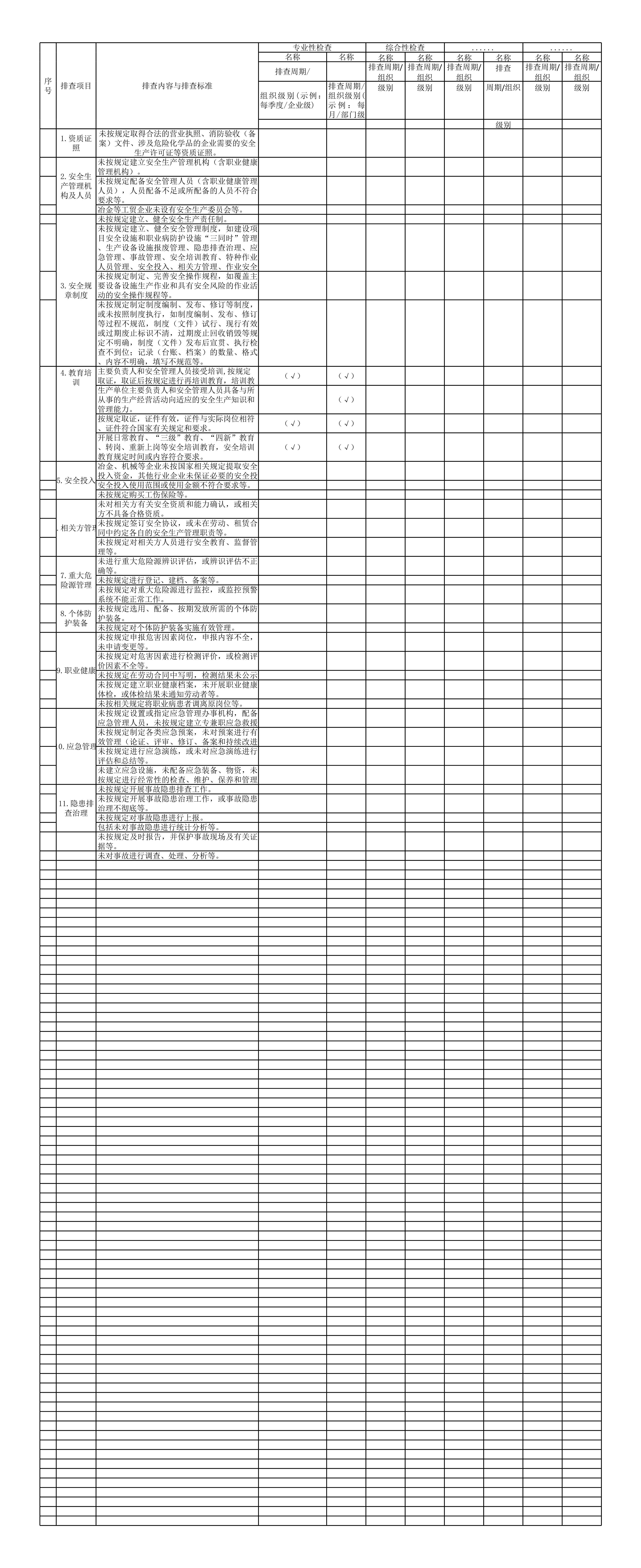 / 汽车制造行业企业基础管理类隐患排查治理清单成果[表格]