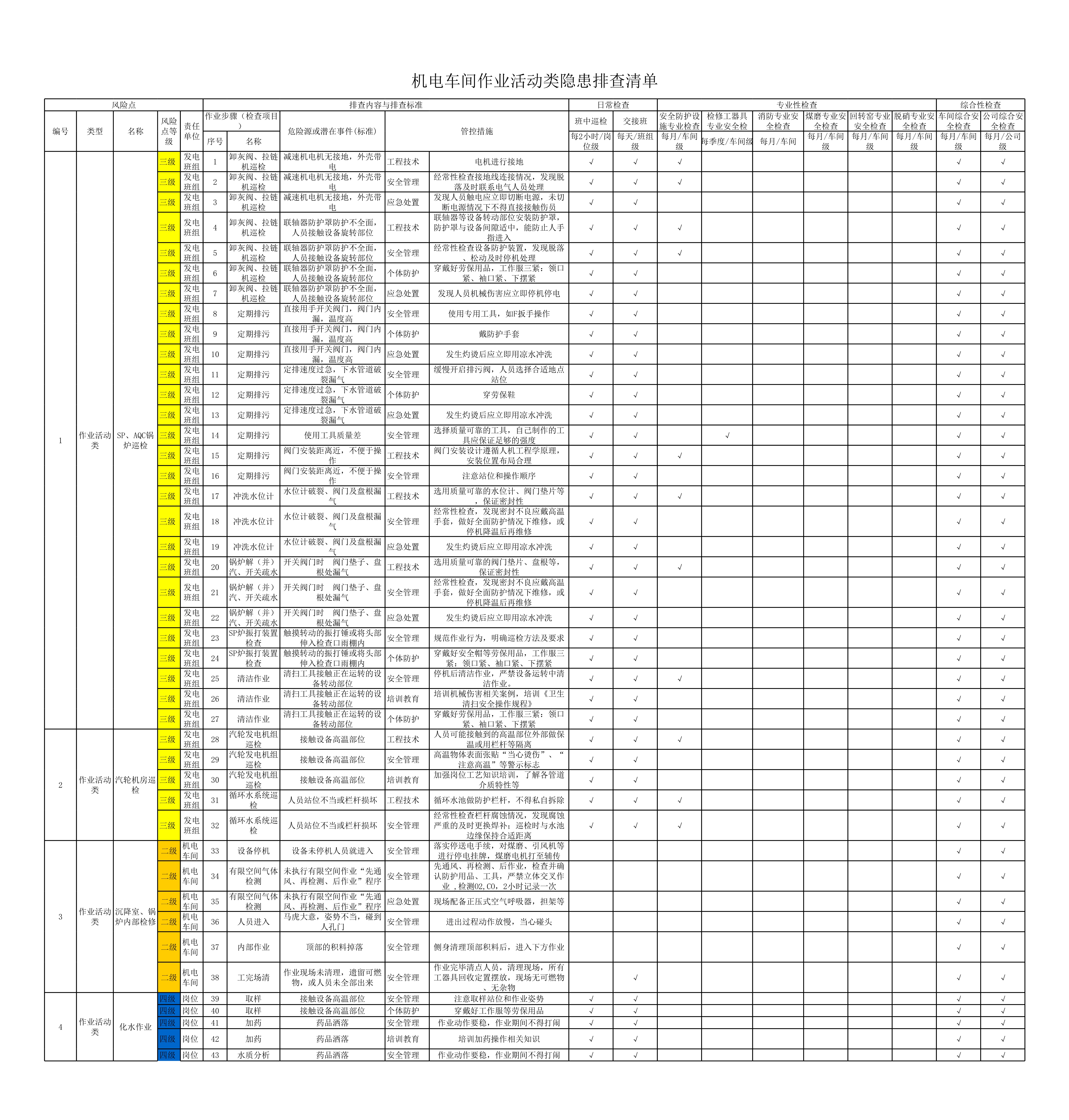 / 机电车间作业活动类隐患排查项目清单[表格]