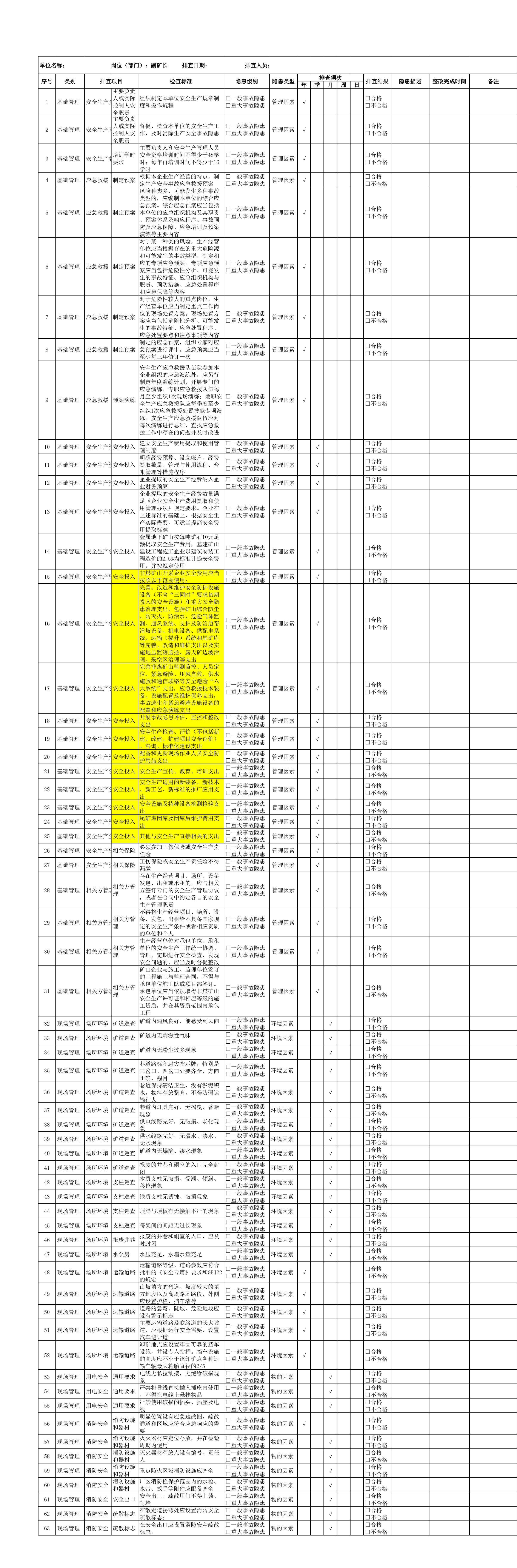 副矿长隐患排查清单[表格]