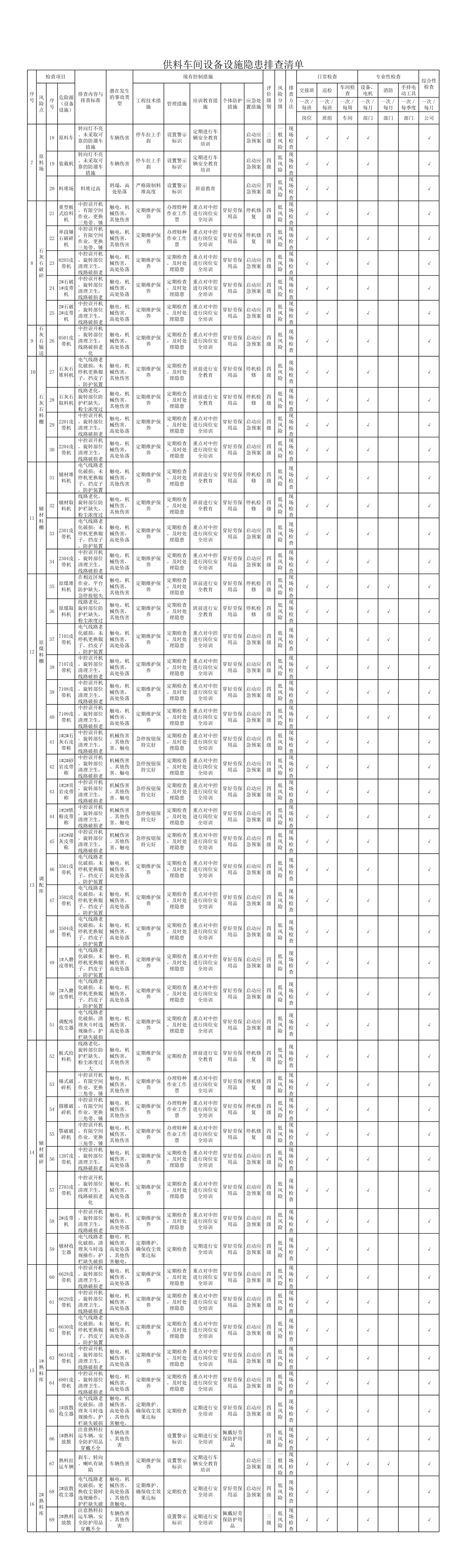 / 供料车间设备设施隐患排查清单[表格]