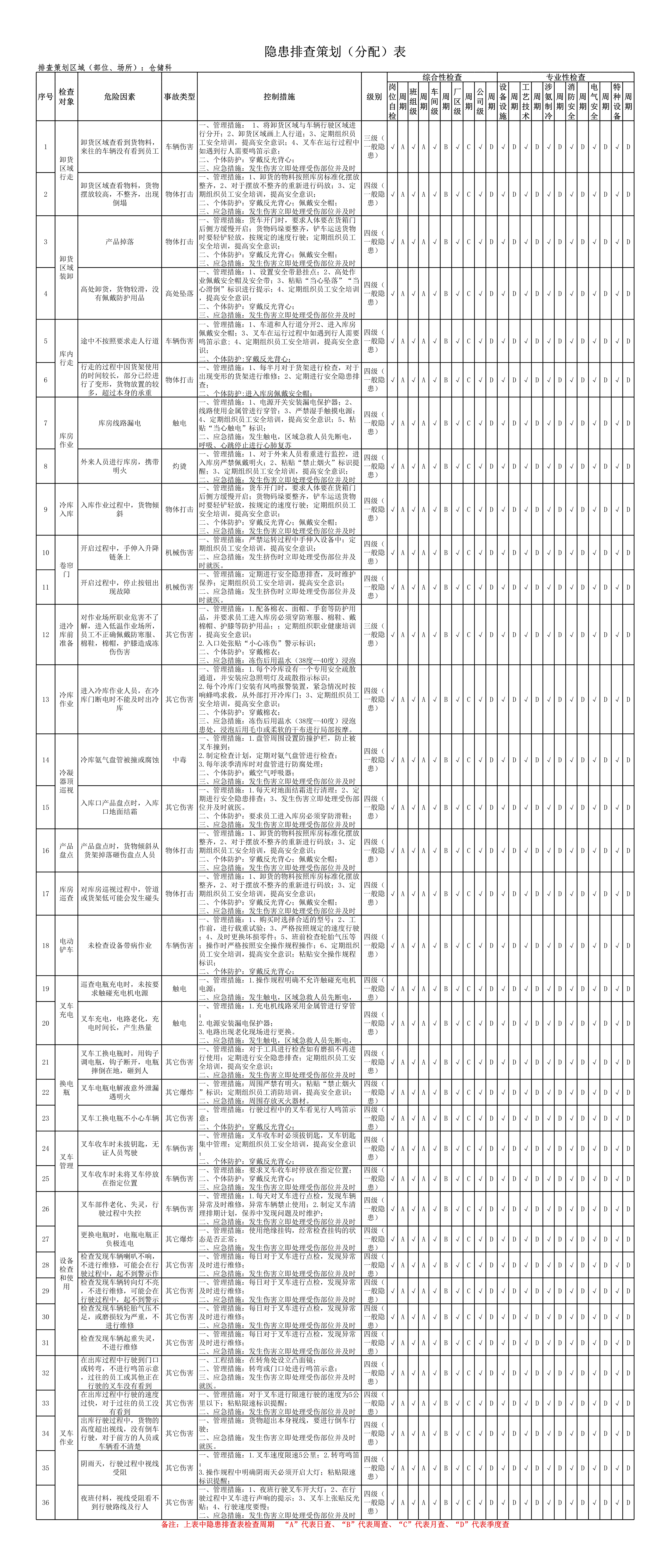 仓储科隐患排查策划(分配)表[表格]