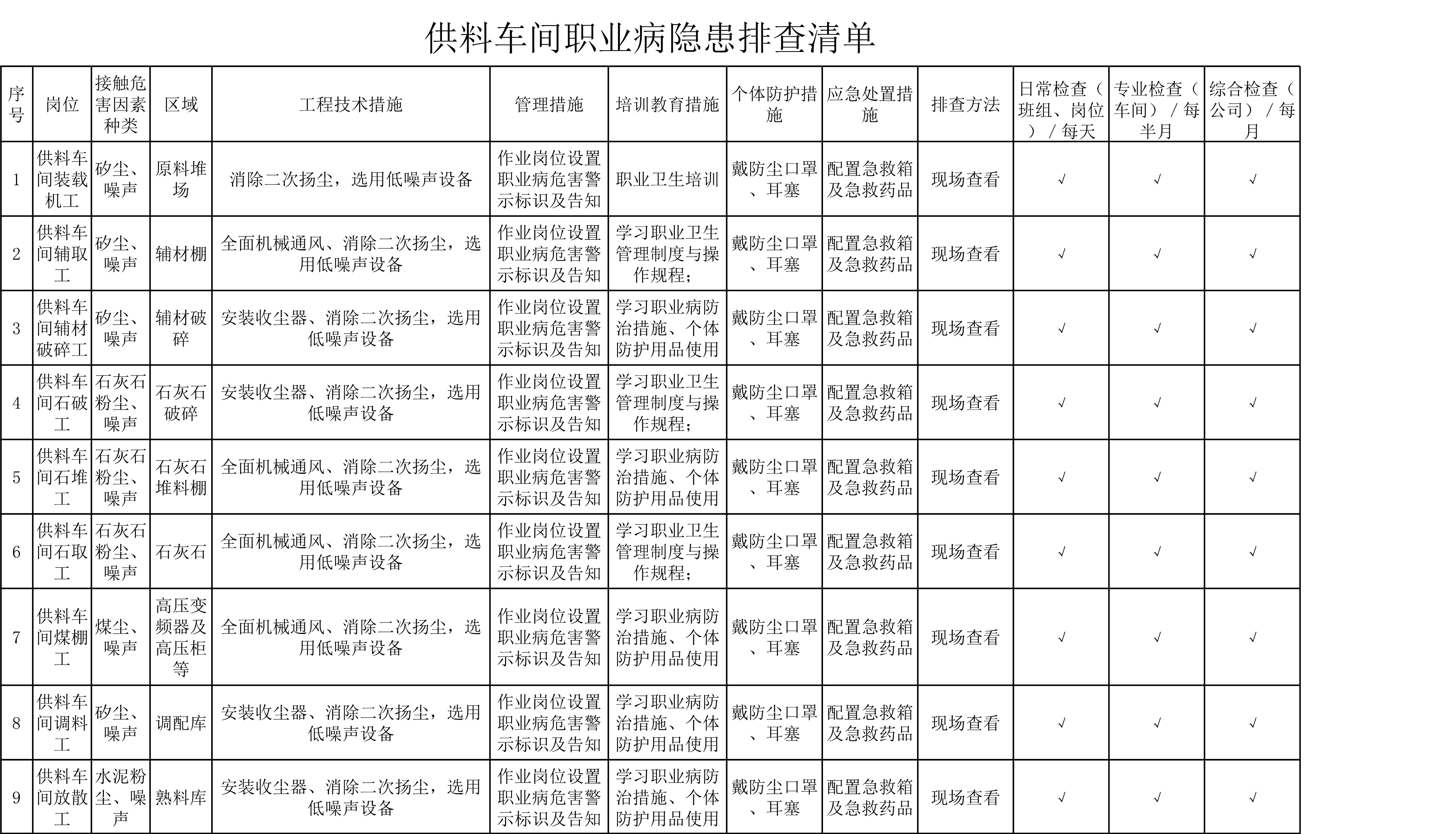 供料车间职业健康类隐患排查清单[表格]