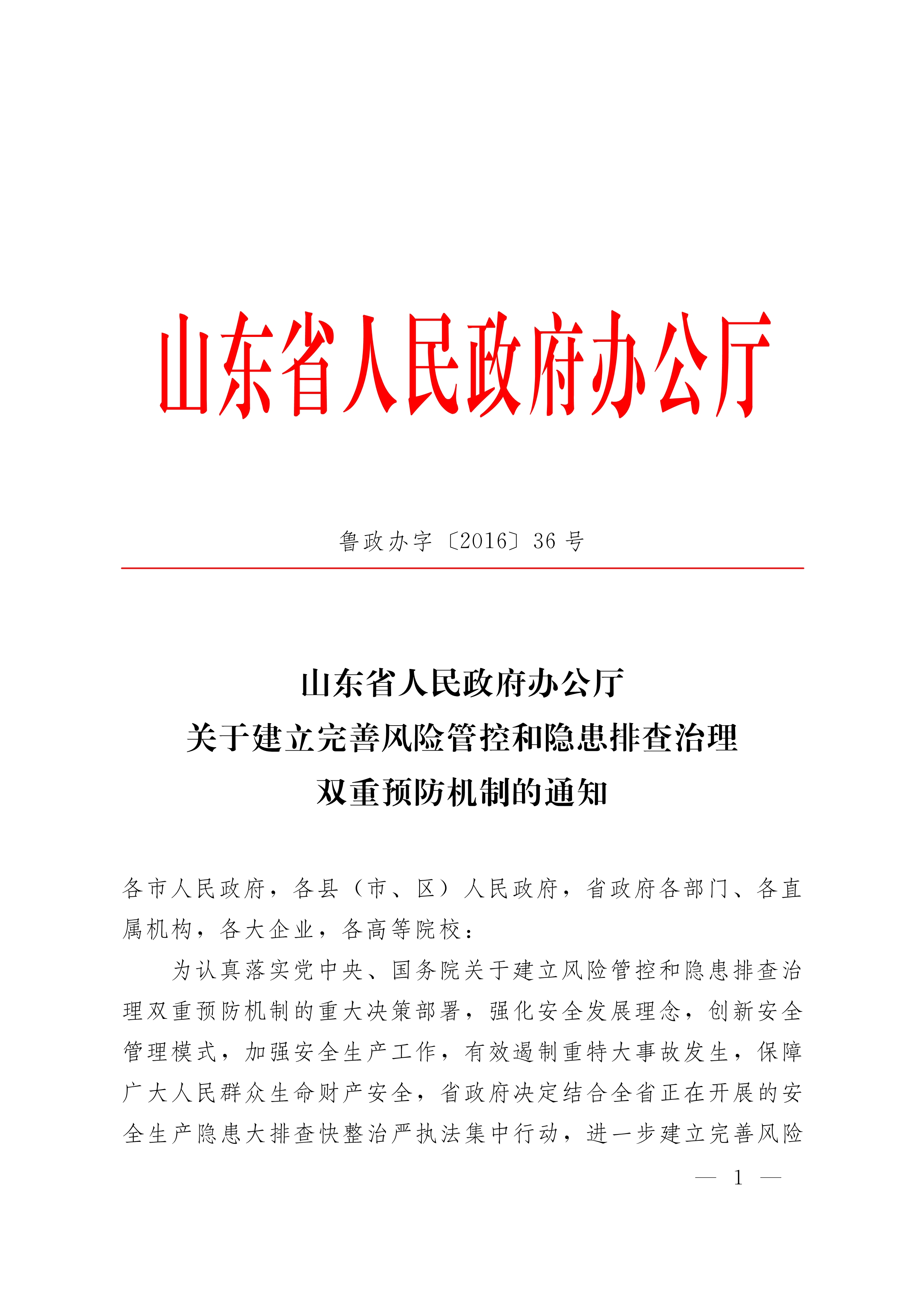 鲁政办字2016 36号关于建立完善风险分级管控和隐患排查治理双重预防机制的通知[PDF]