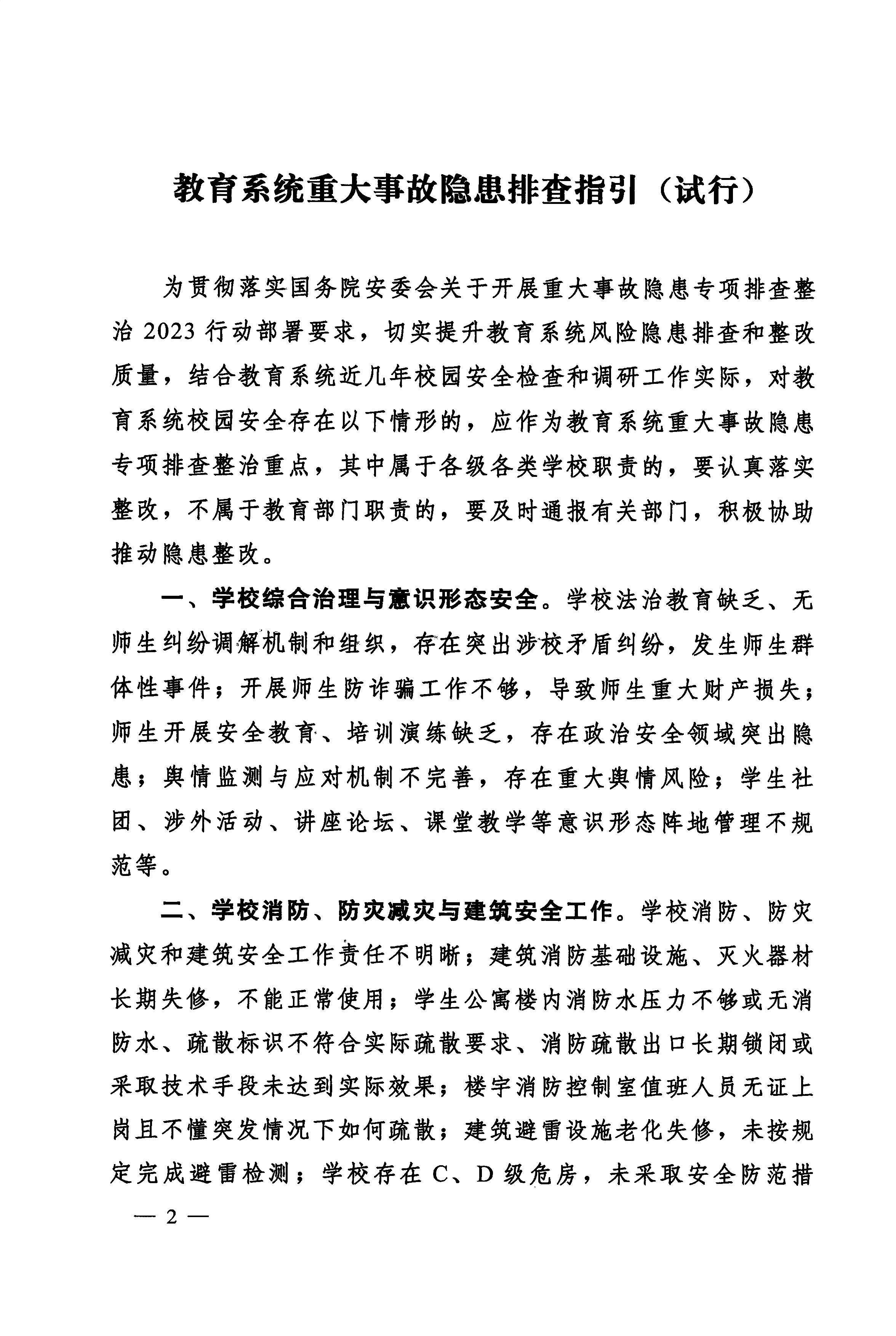教育系统重大事故隐患排查指引(试行)(教发厅函2023 22号)[PDF]