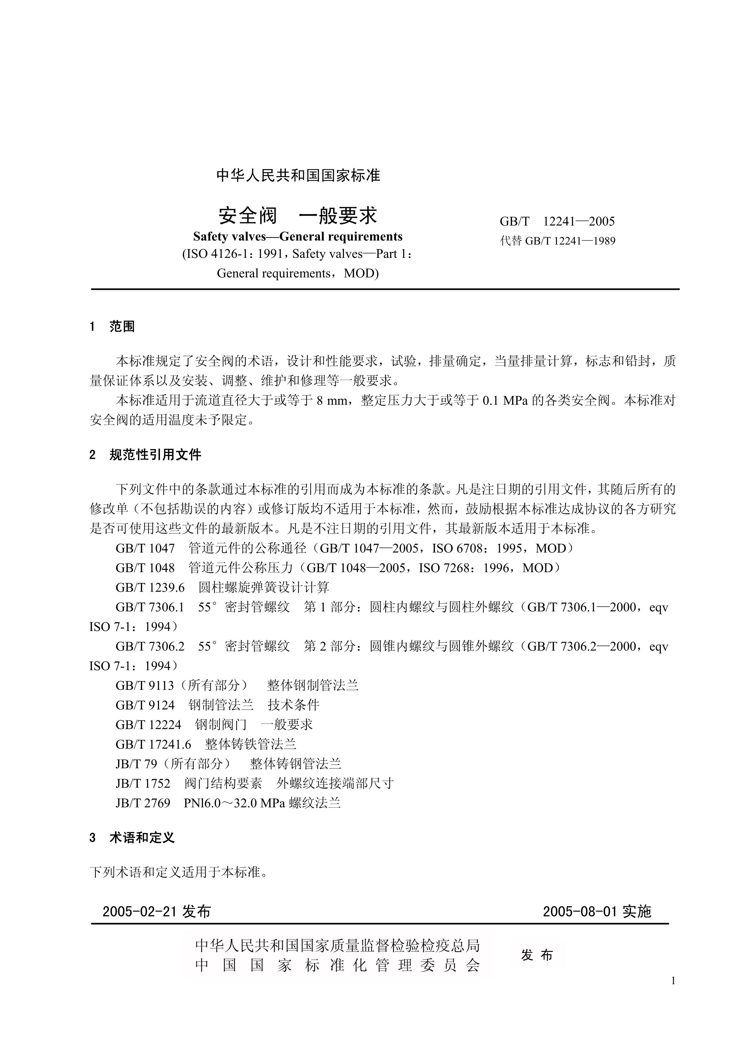 / 安全阀一般要求GB12241-2005[PDF]