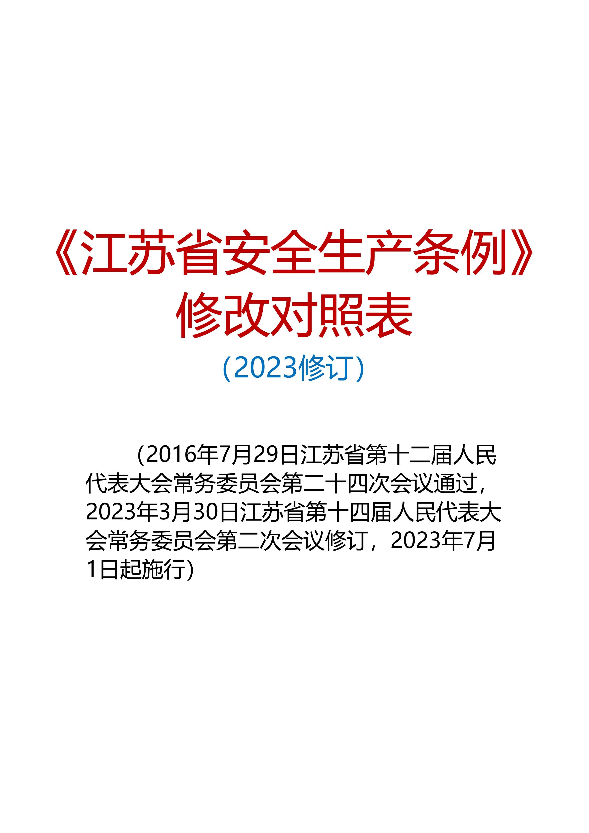 / 2023版《江苏省安全生产条例》修改对照表[PDF]