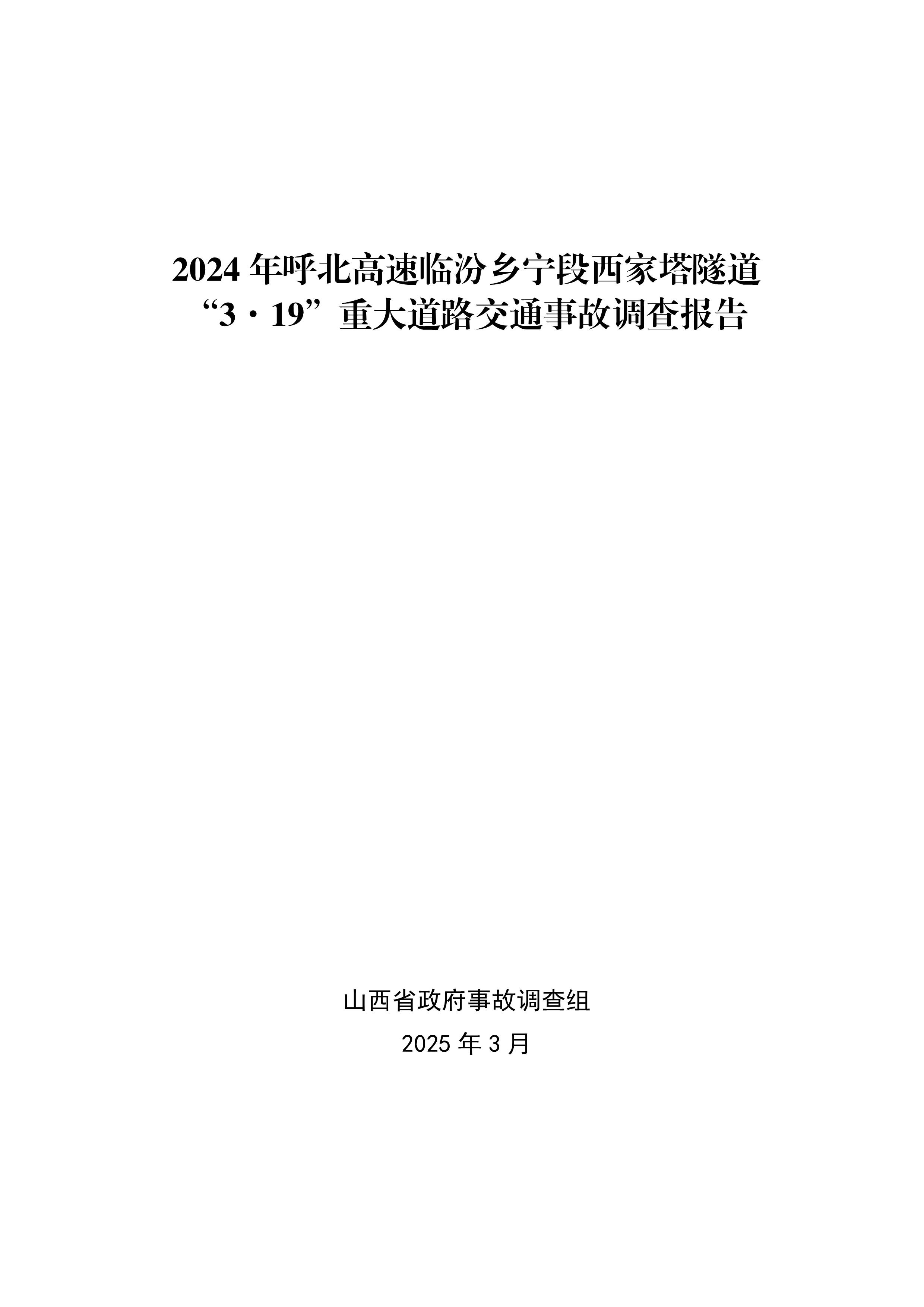 2024年呼北高速临汾乡宁段西家塔隧道3.19重大道路交通事故调查报告[PDF]