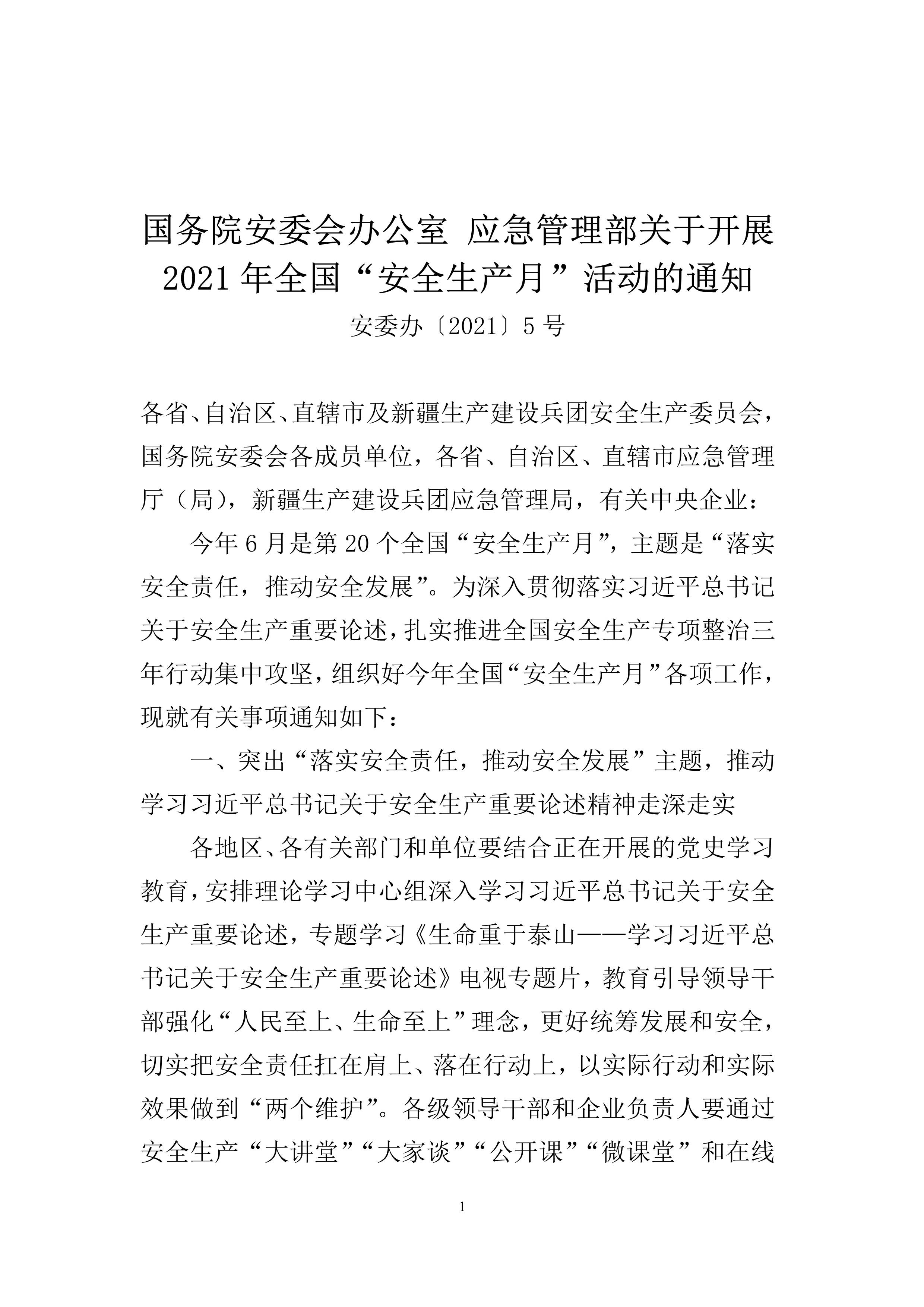 2021年全国安全生产月活动的通知(安委办20215号)[PDF]