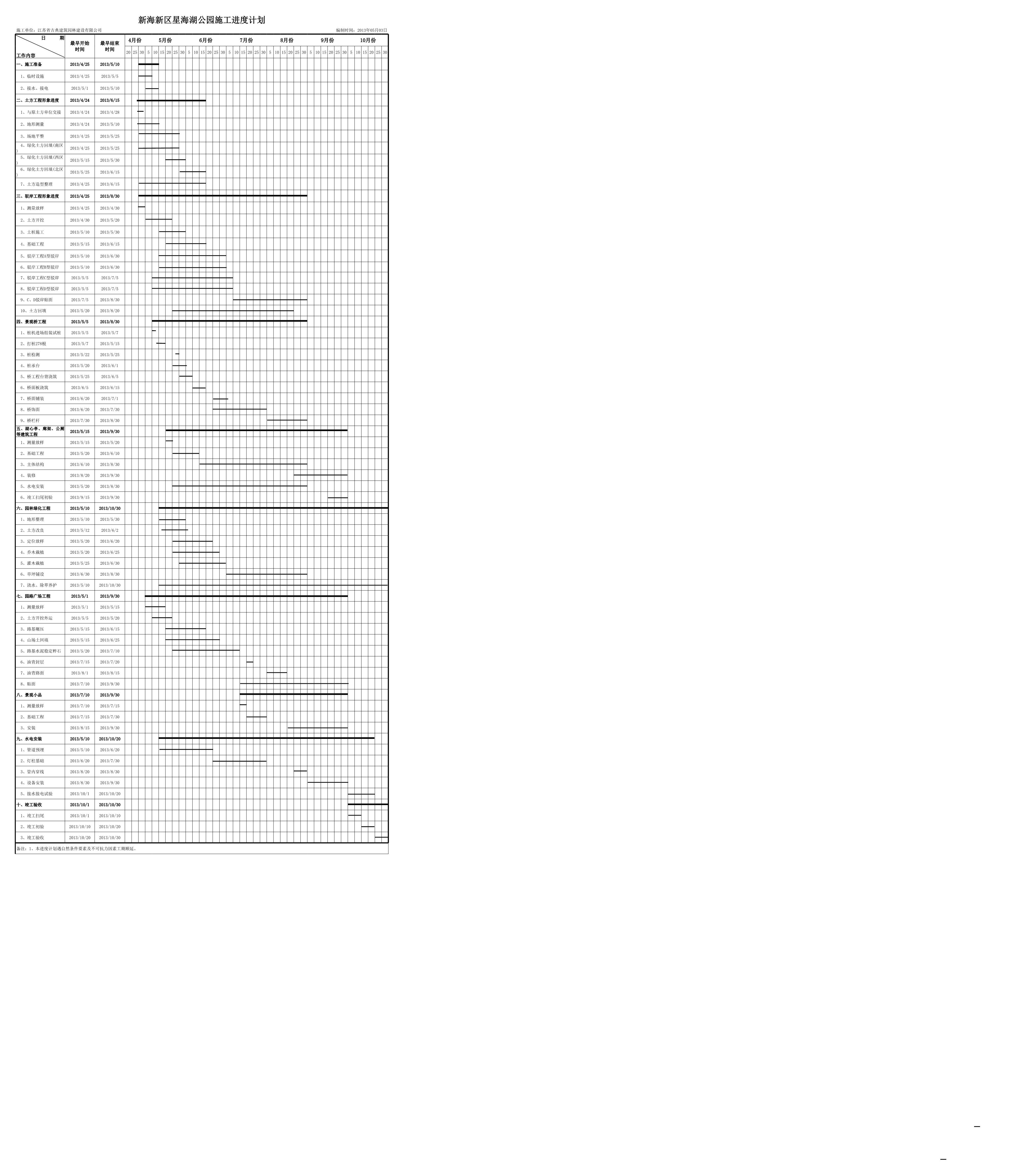 新海新区星海湖公园施工进度计划(横道图)[表格]