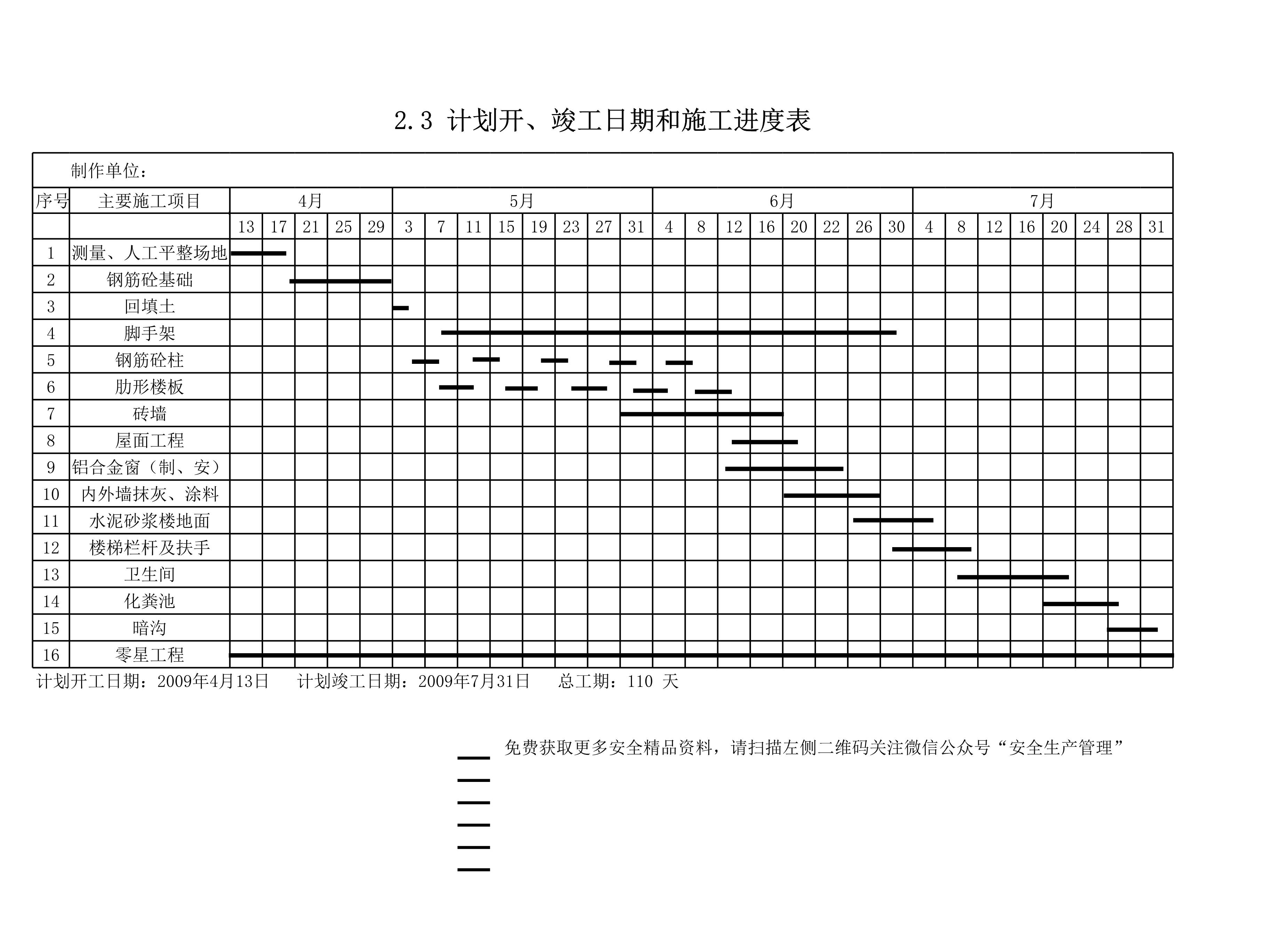 叶县福地明珠住宅小区工程施工计划横道图[表格]
