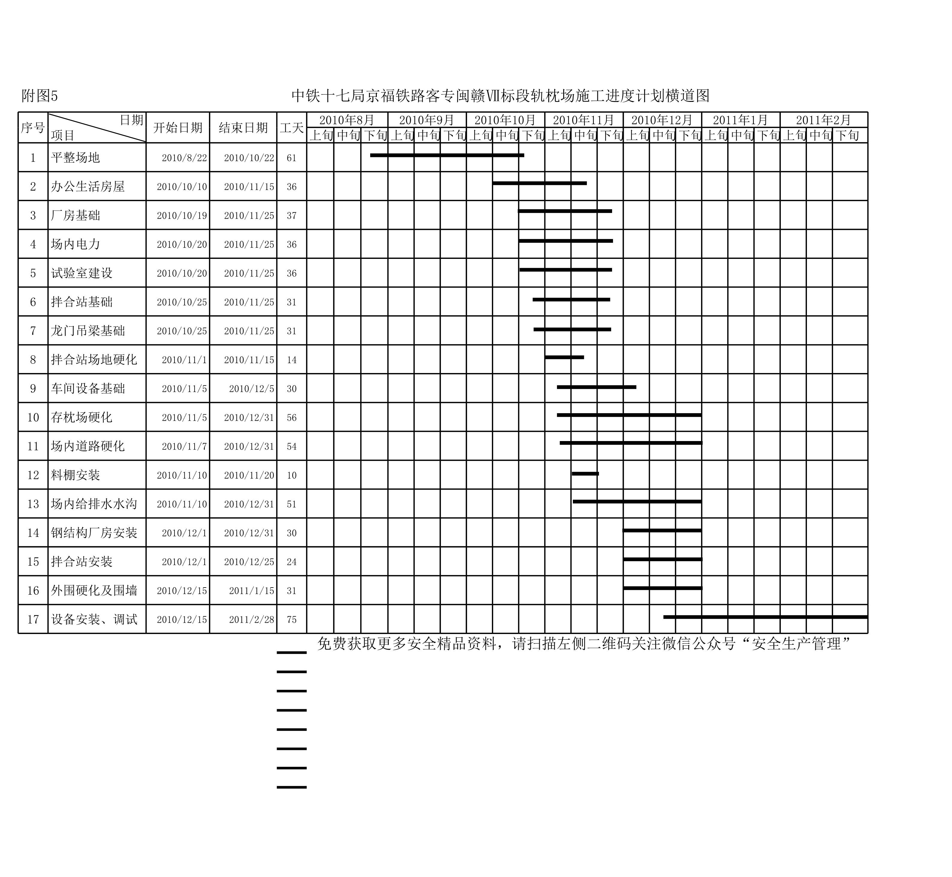 / 中铁十七局京福铁路客专闽赣Ⅶ标段轨枕场施工进度计划横道图[表格]