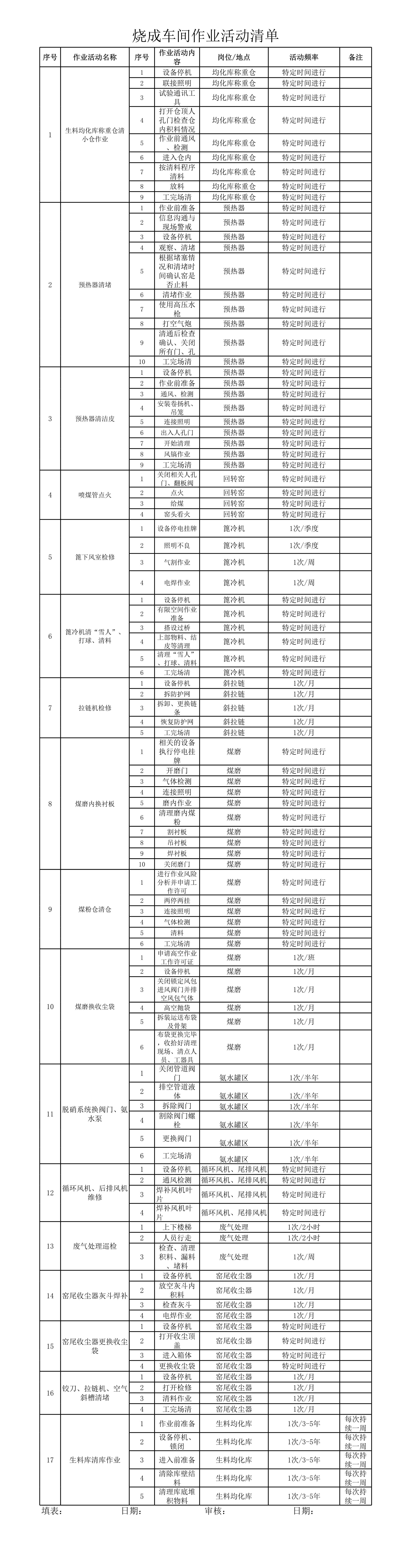 / 风险点排查-确定.烧成车间作业活动清单[表格]