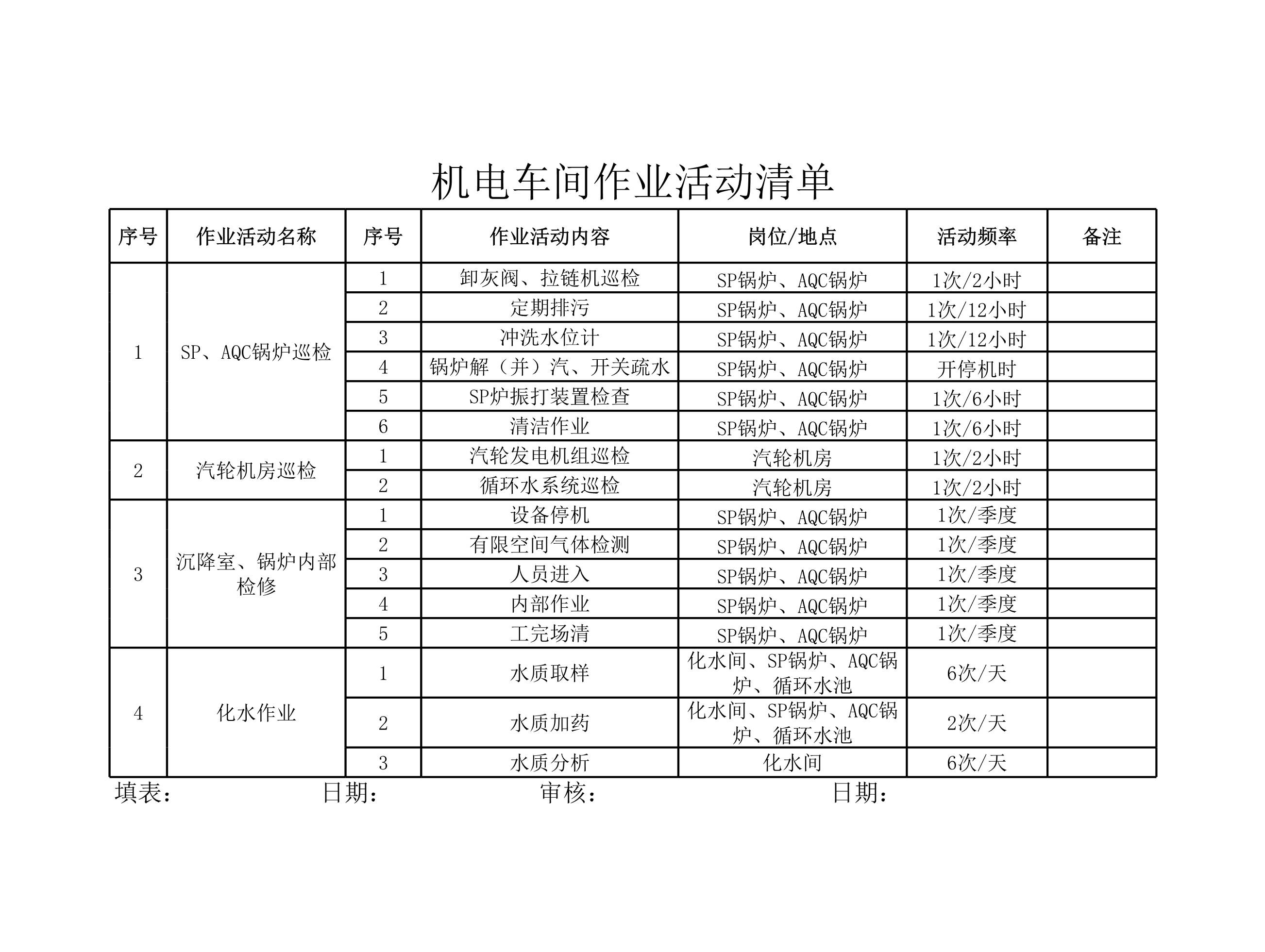 / 风险点排查-确定.机电车间作业活动清单[表格]