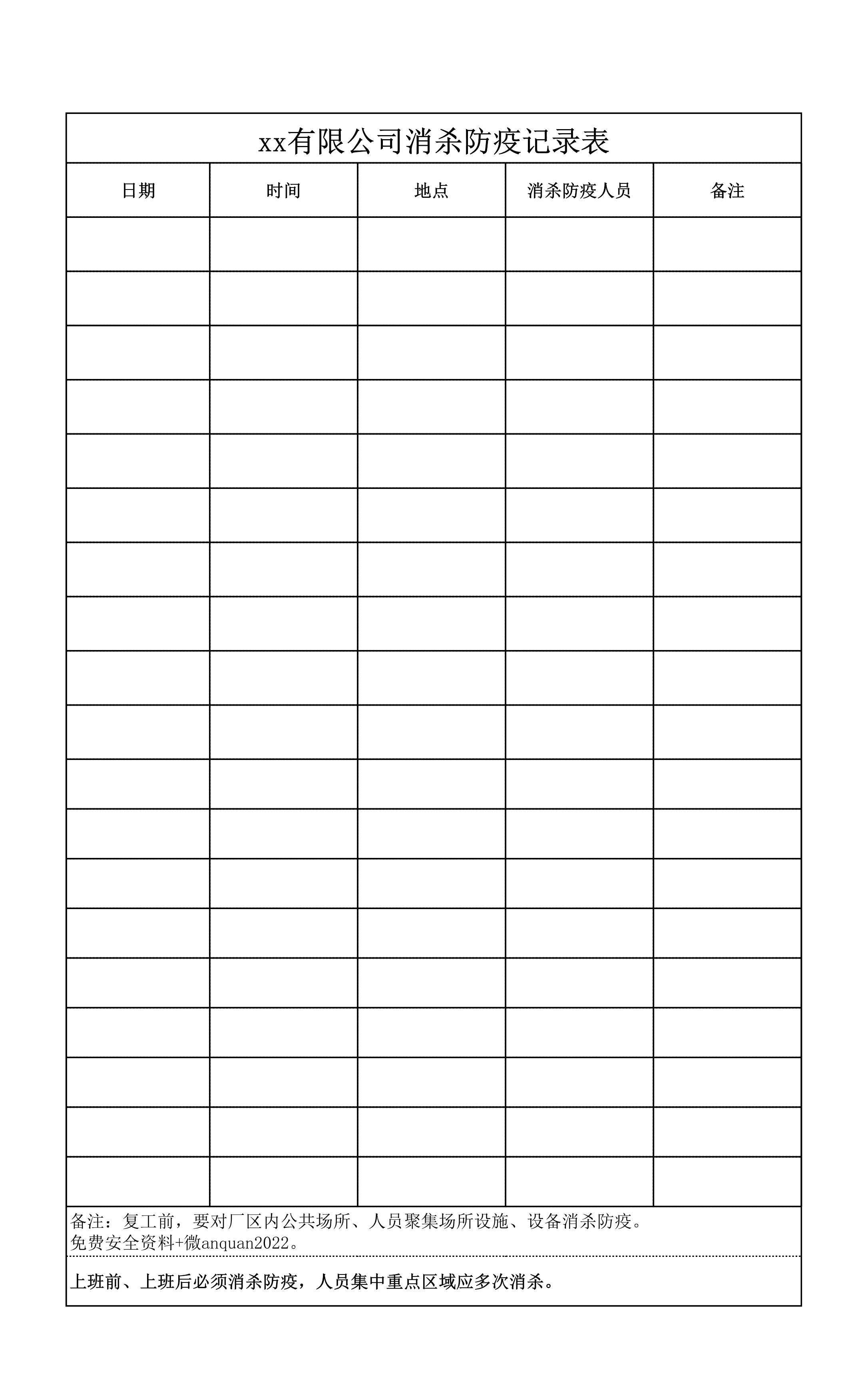 / 防疫工作表1.消杀防疫记录表[表格]