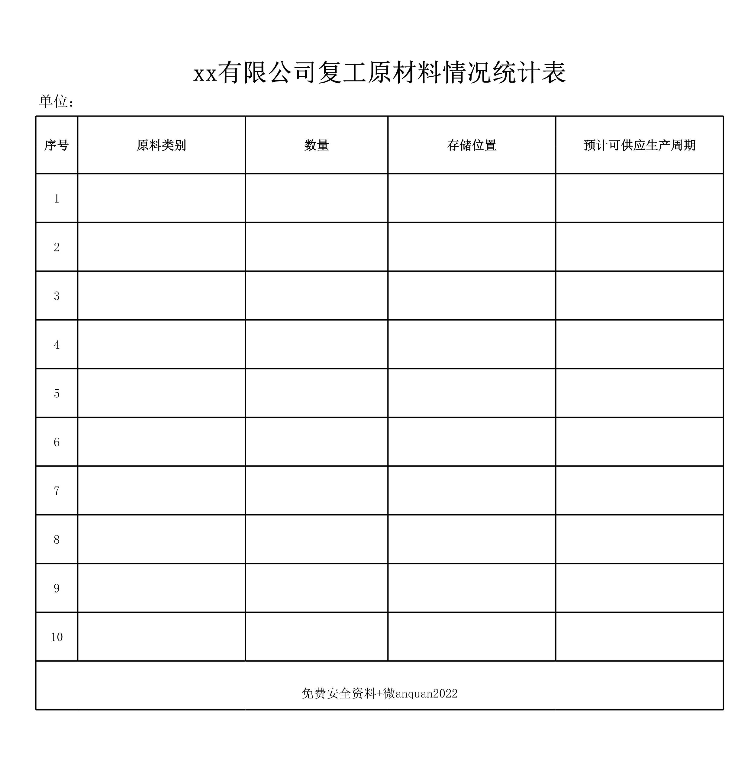 / 防疫工作表6.复工原材料情况统计表[表格]