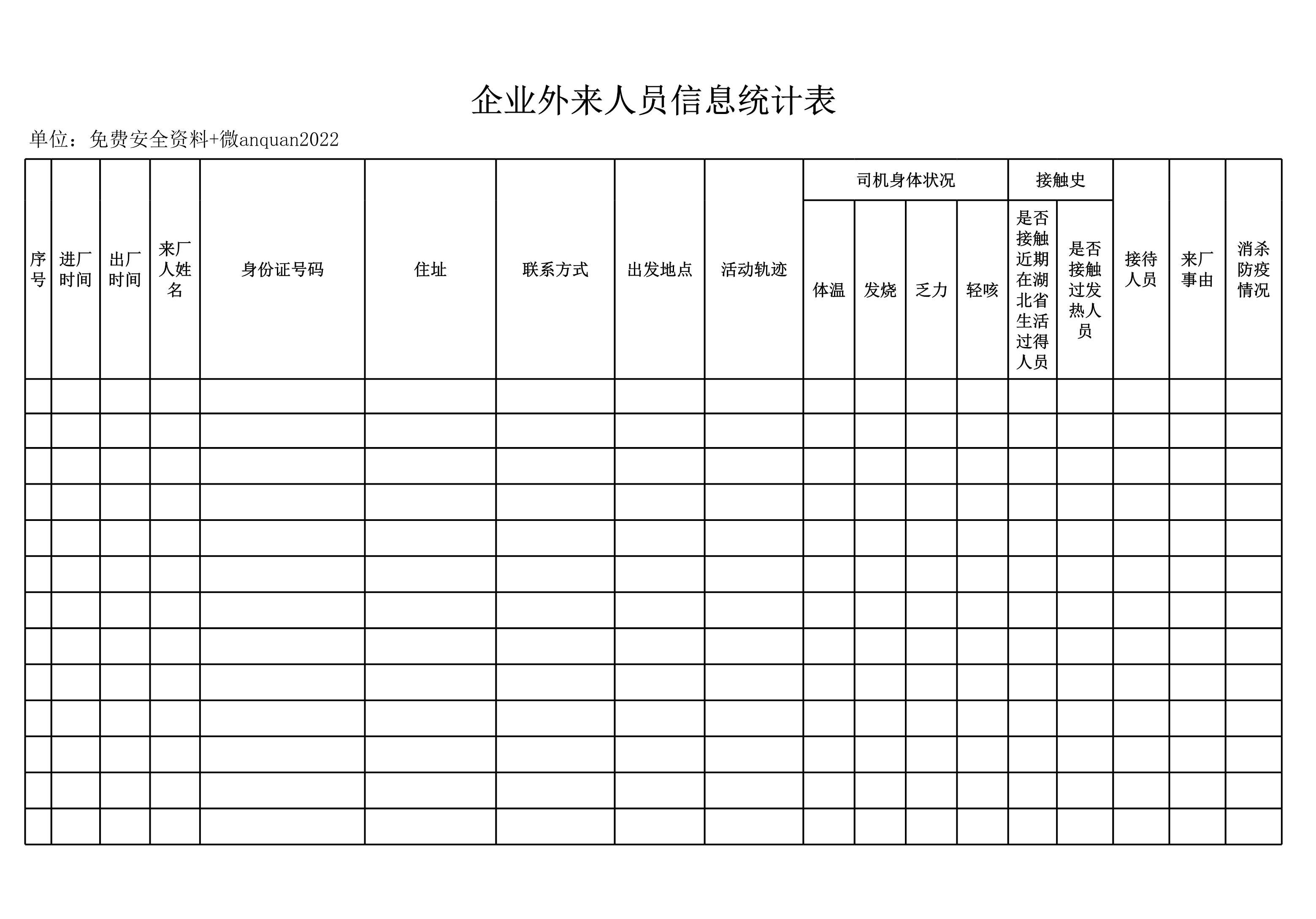 / 防疫工作表10.企业外来人员信息统计表[表格]