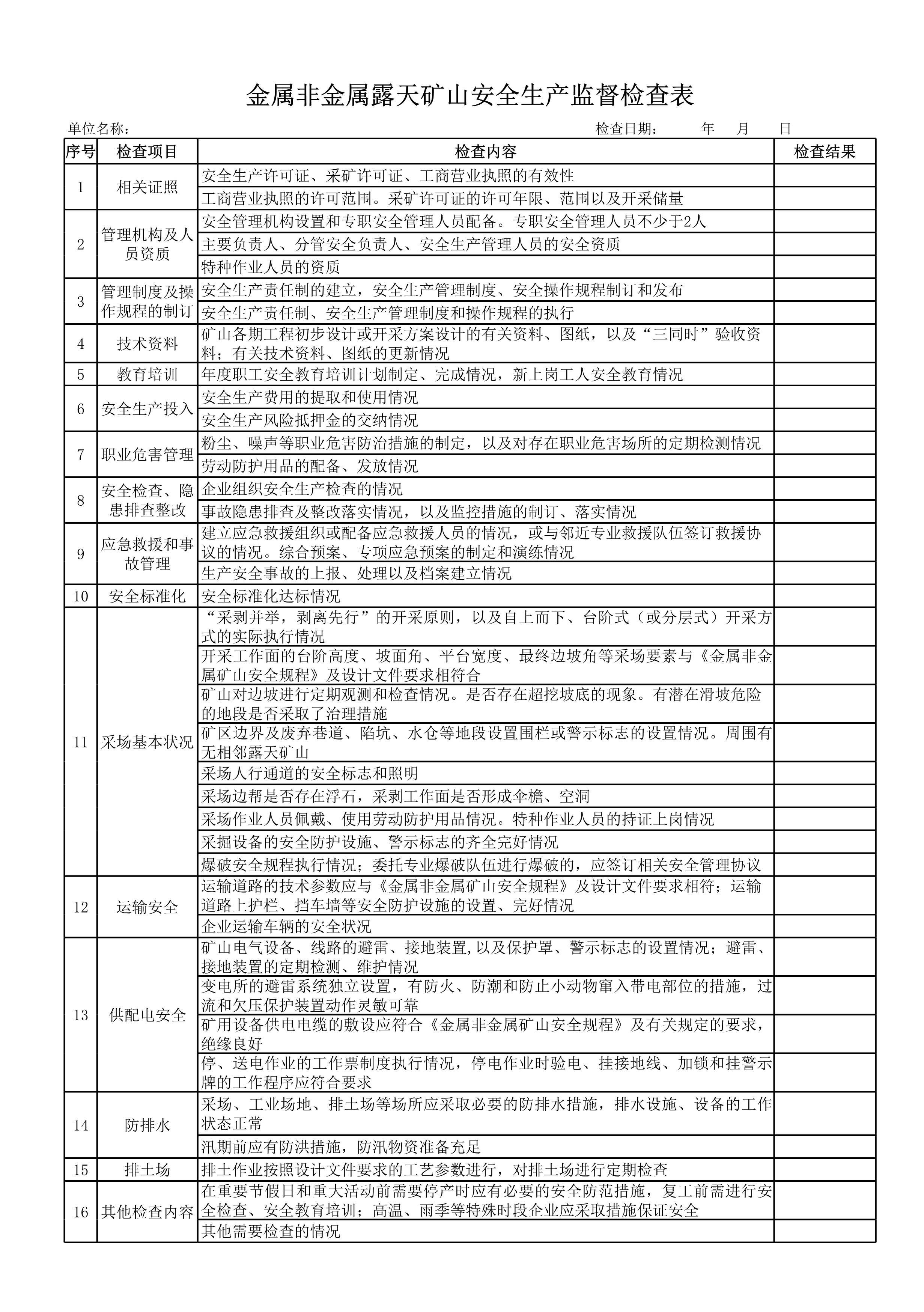 / 金属非金属露天矿山安全生产监督检查表[表格]