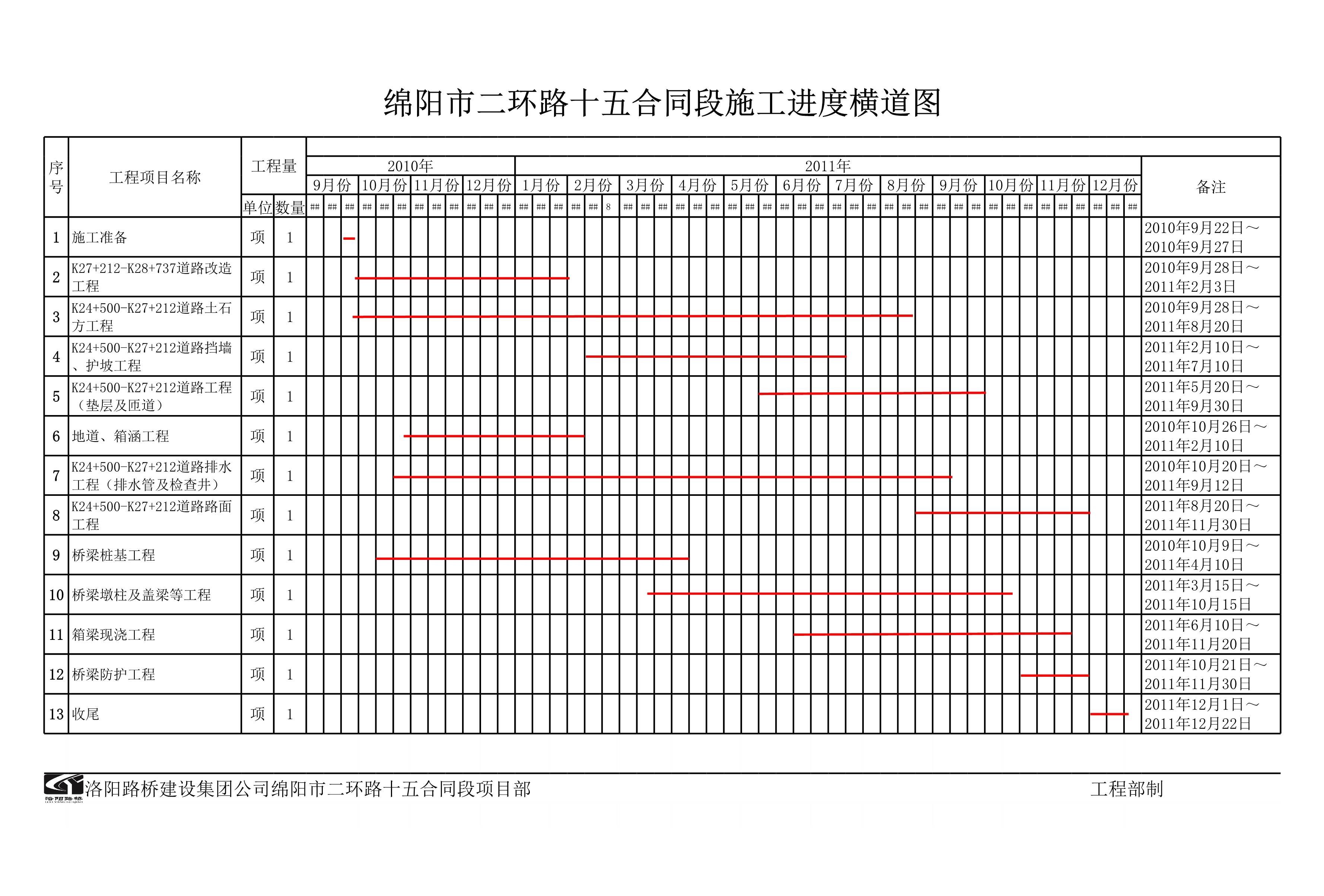 绵阳市二环路十五合同段施工进度横道图[表格]