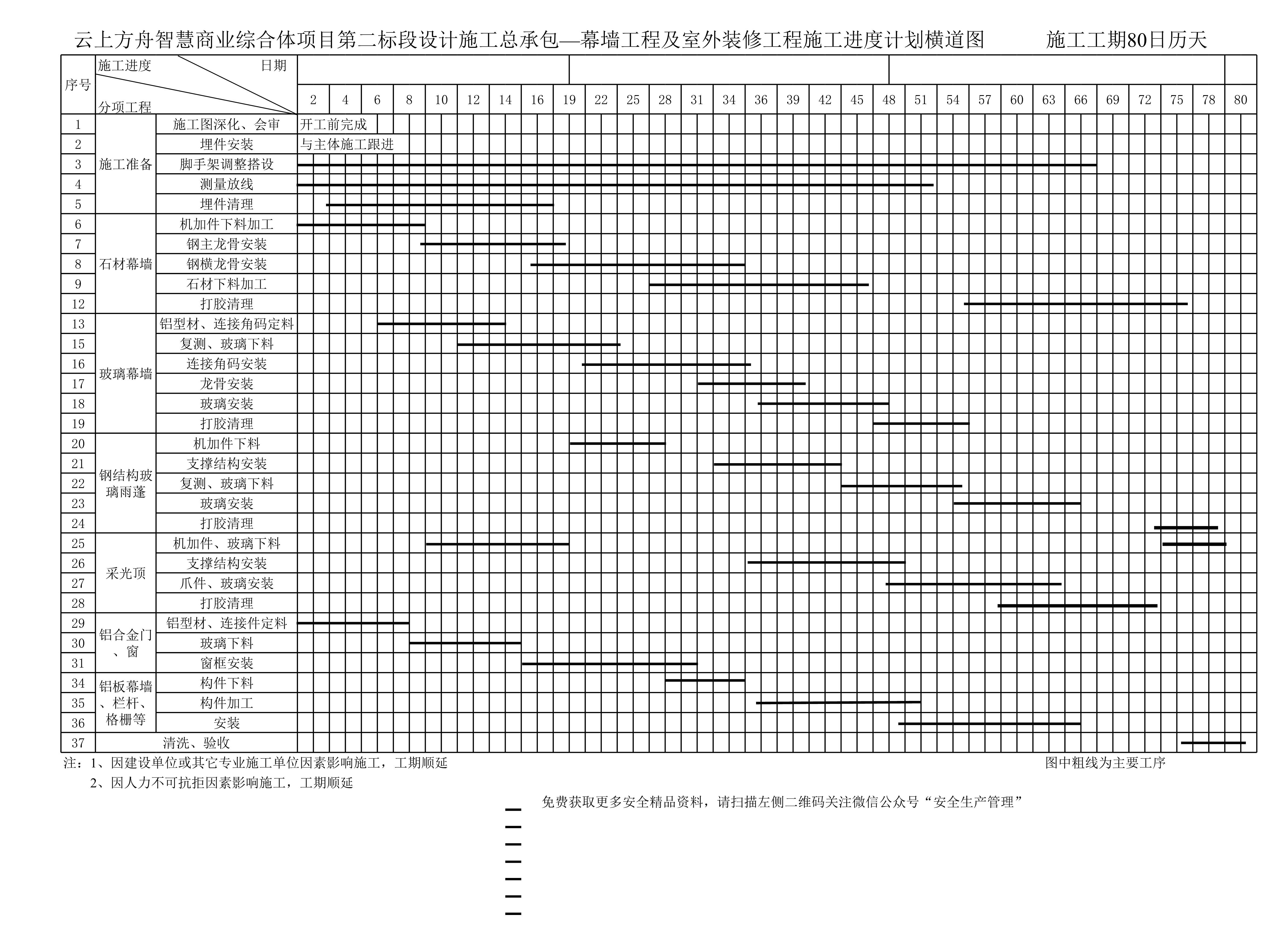 幕墙工程及室外装修工程施工进度计划横道图[表格]