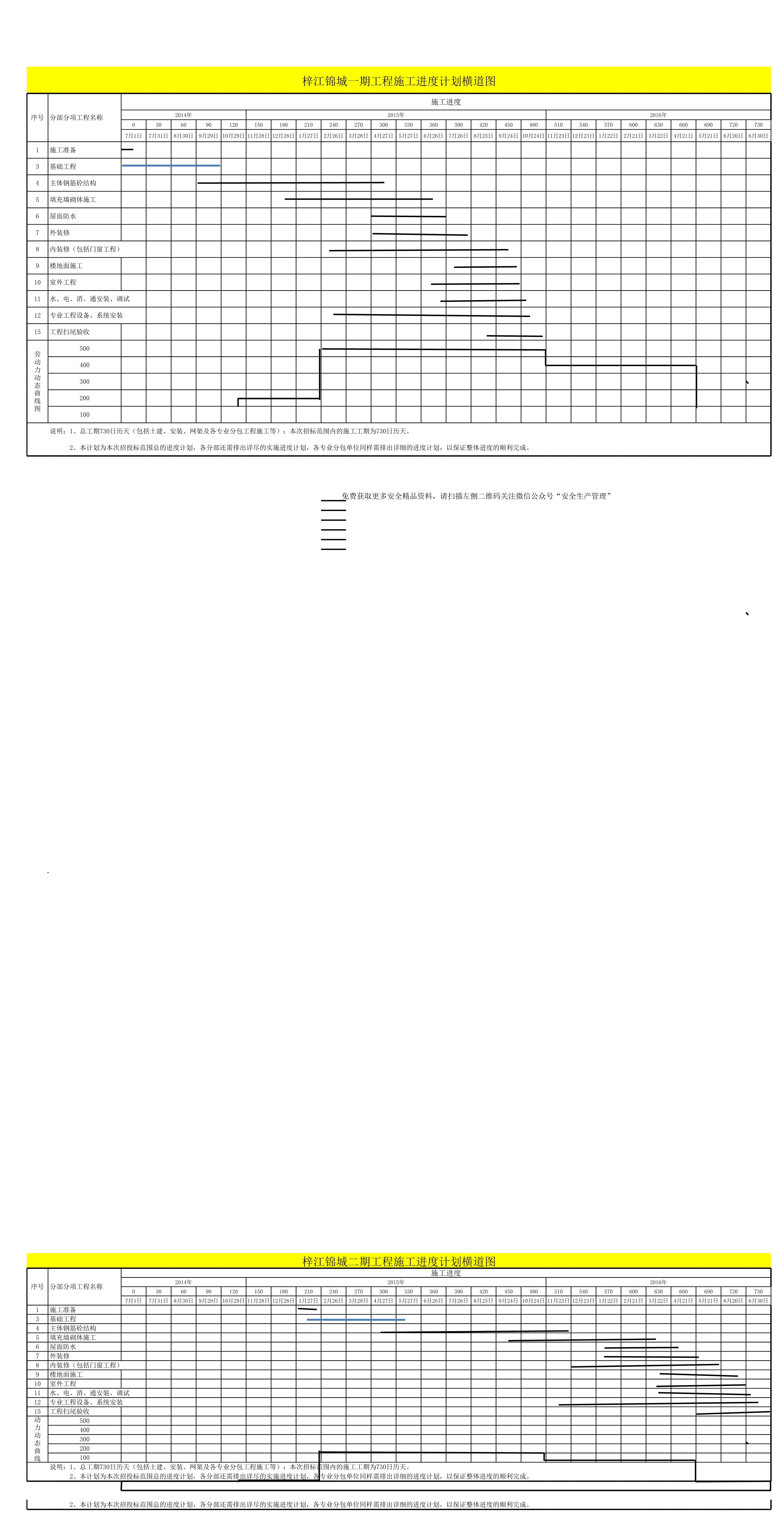 工程施工进度计划横道图带劳动力动态曲线图[表格]