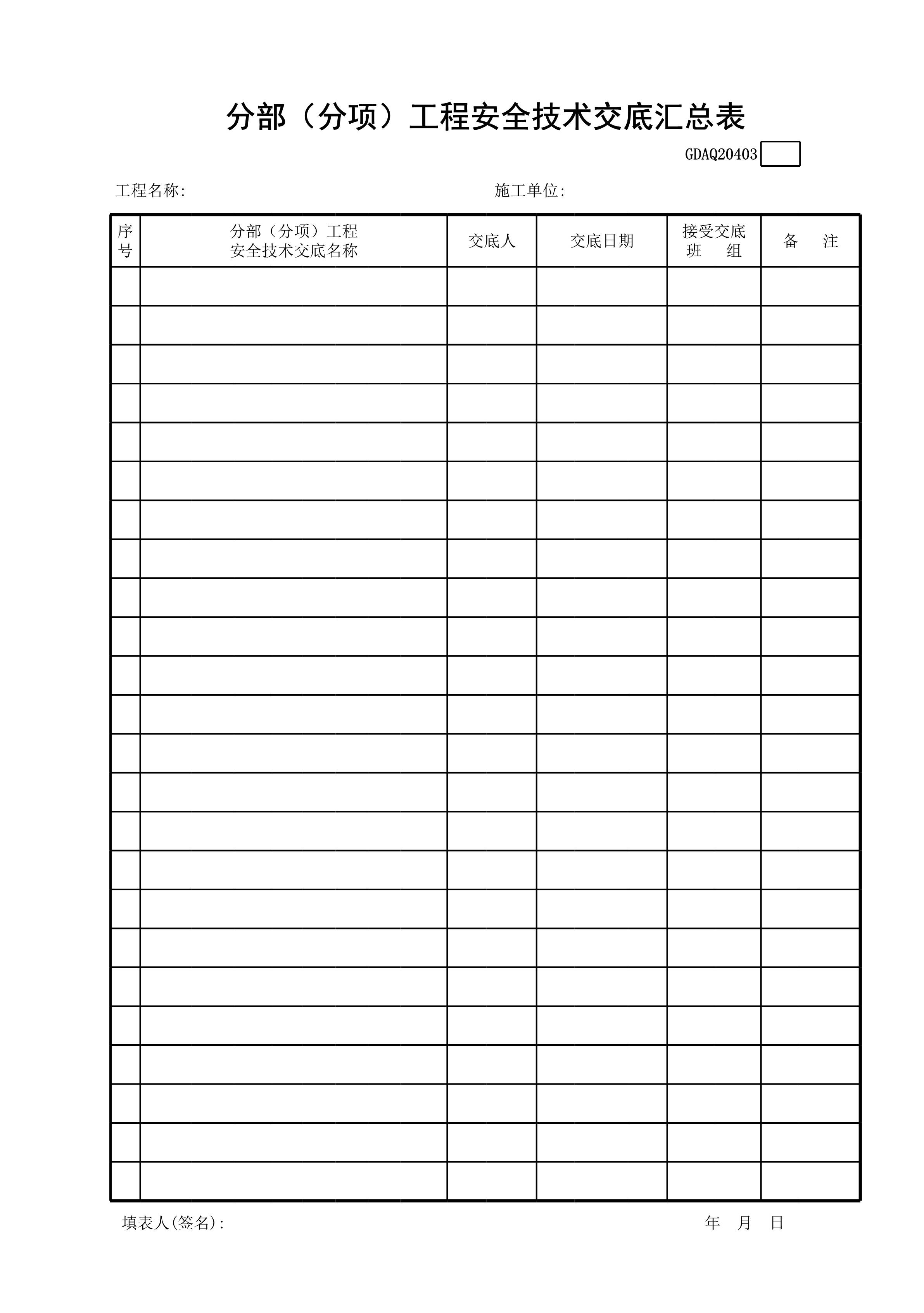 / 分部(分项)工程安全技术交底汇总表GDAQ20403[表格]