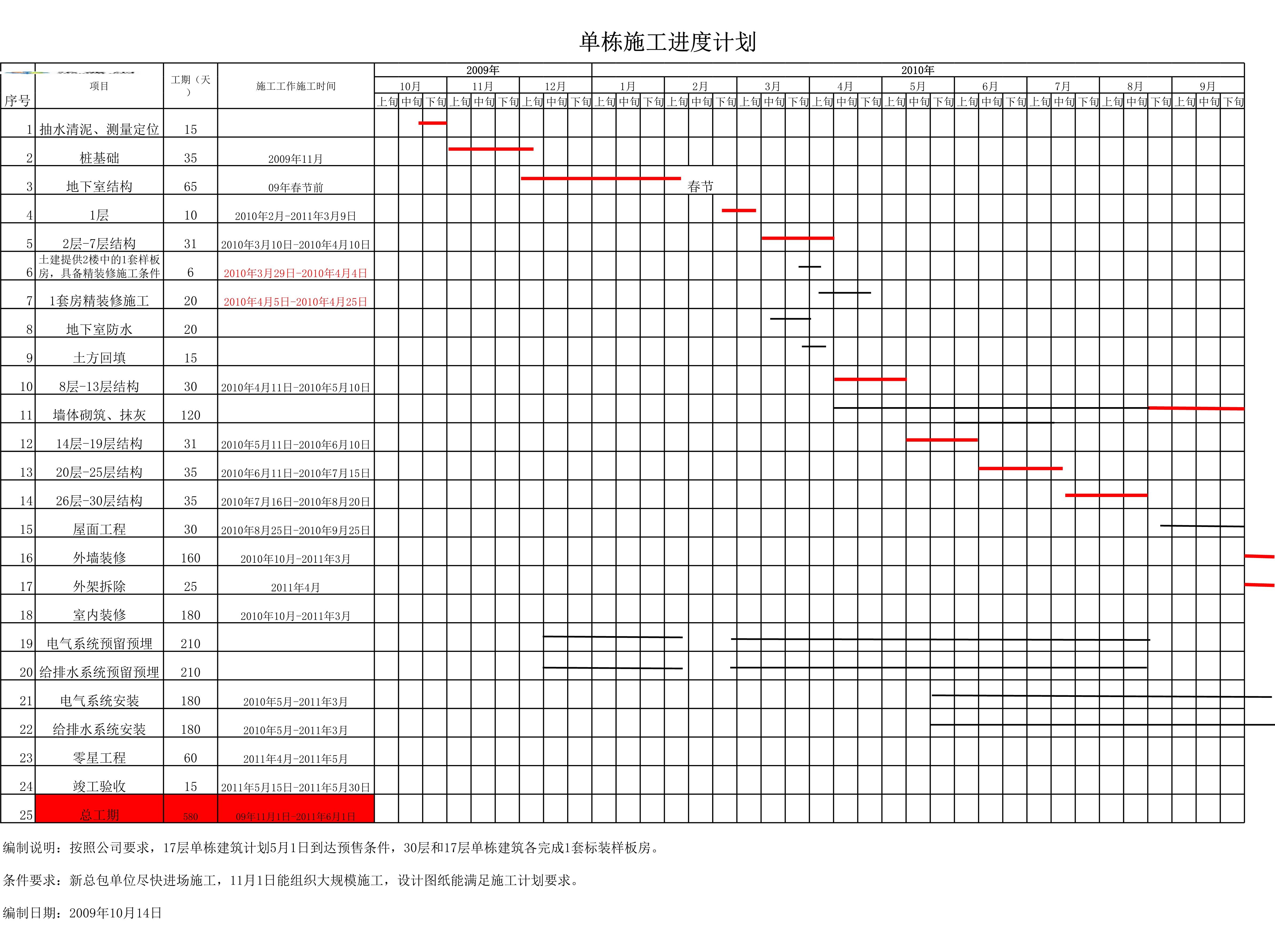 单栋施工进度计划横道图[表格]