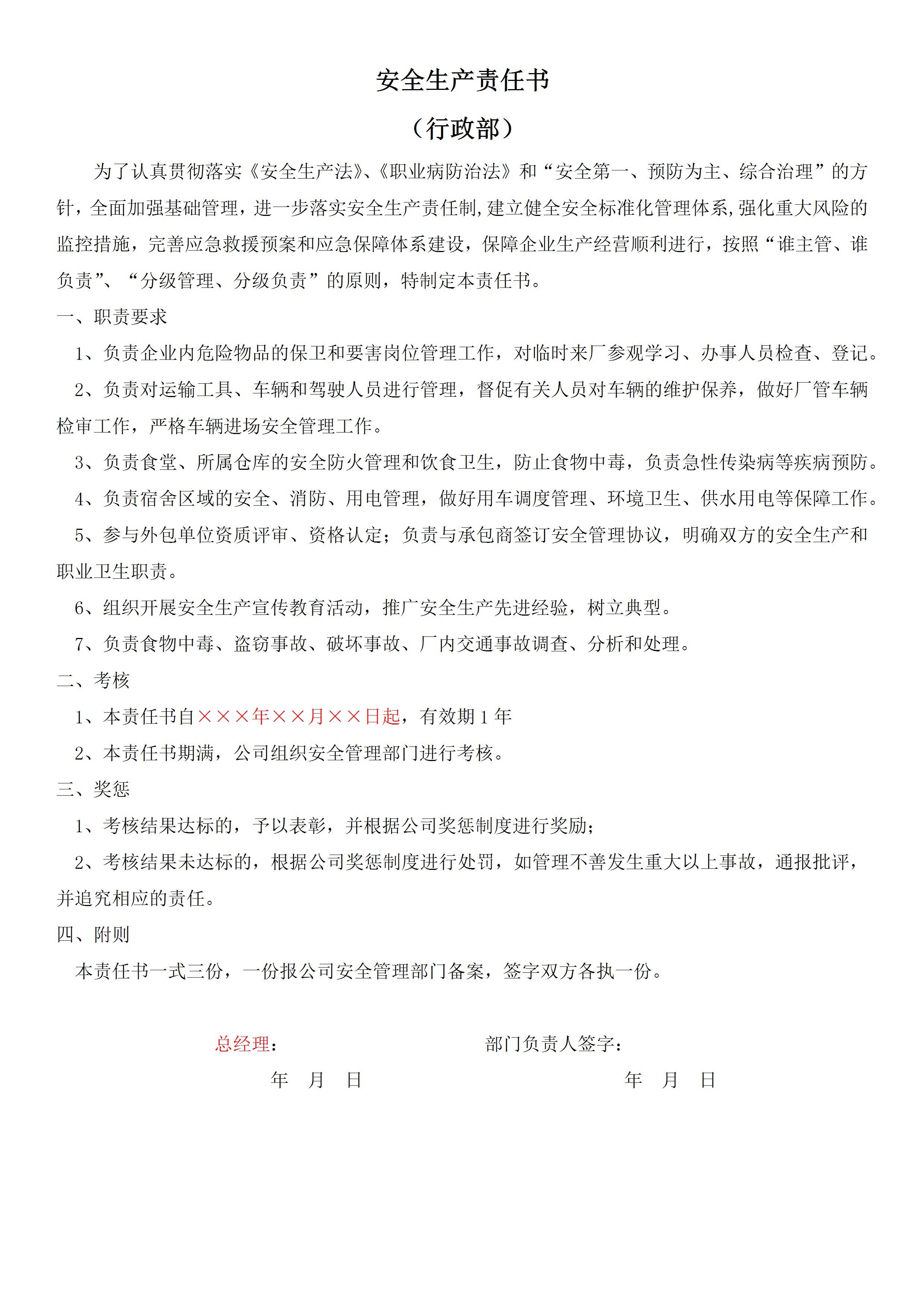 行政部安全生产责任书[文档]