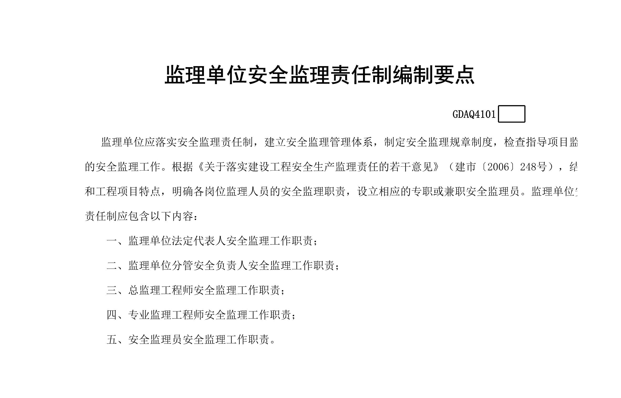 / 监理单位安全监理责任制编制要点GDAQ4101[表格]