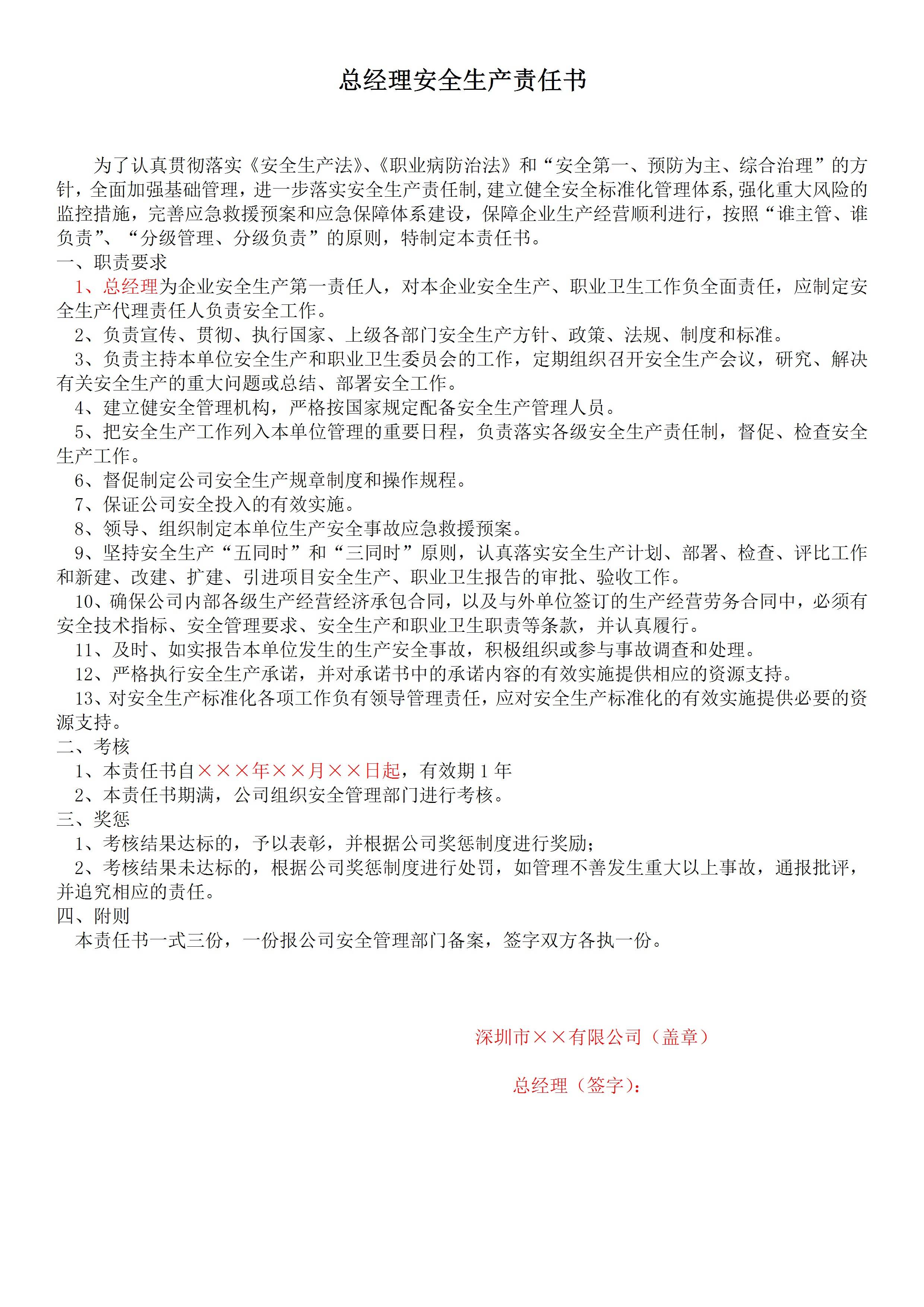 总经理(主要负责人)安全生产责任书[文档]