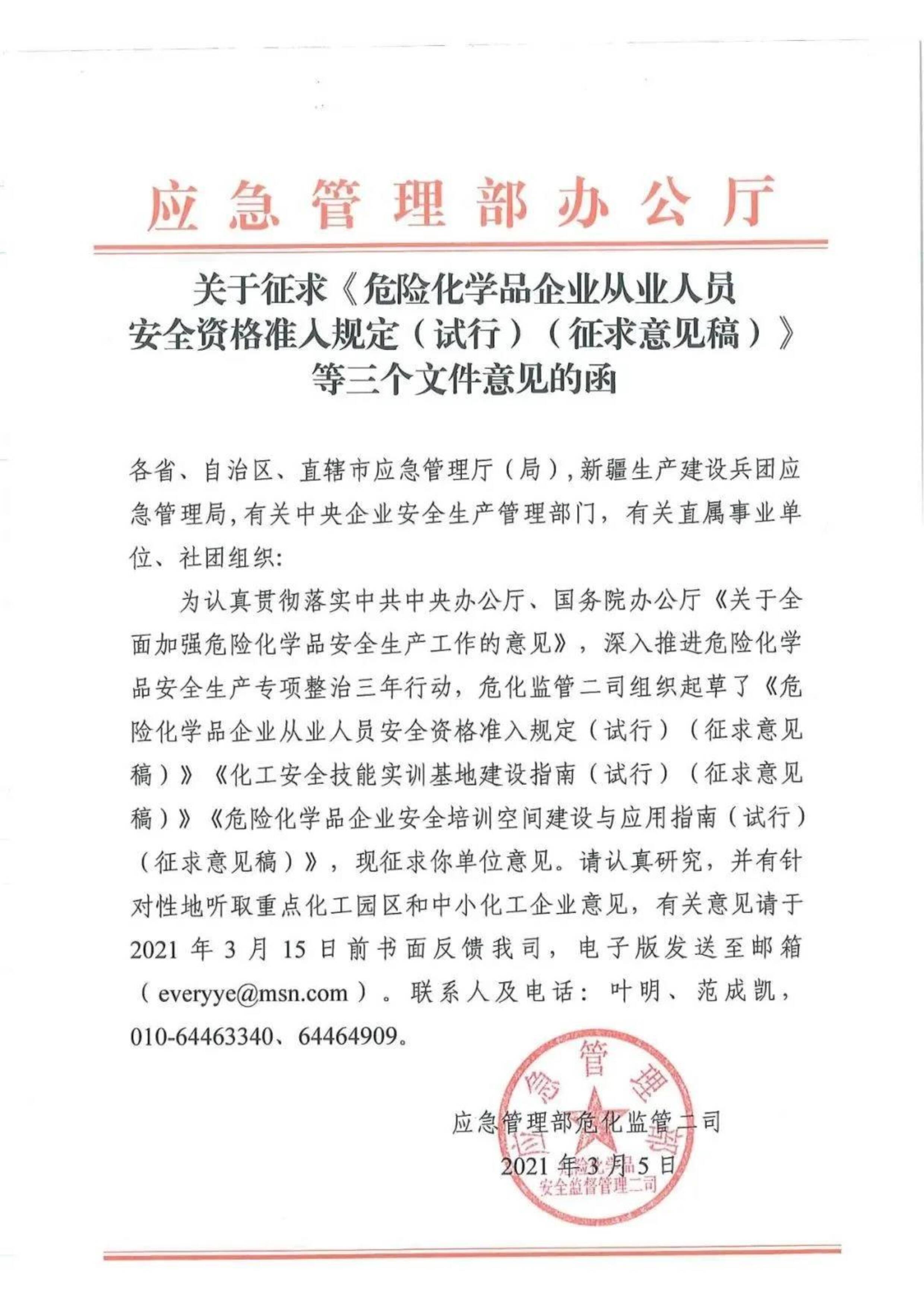应急管理部办公厅《危险化学品企业从业人员安全资格准入规定(试行)(征求意见稿)》[PDF]