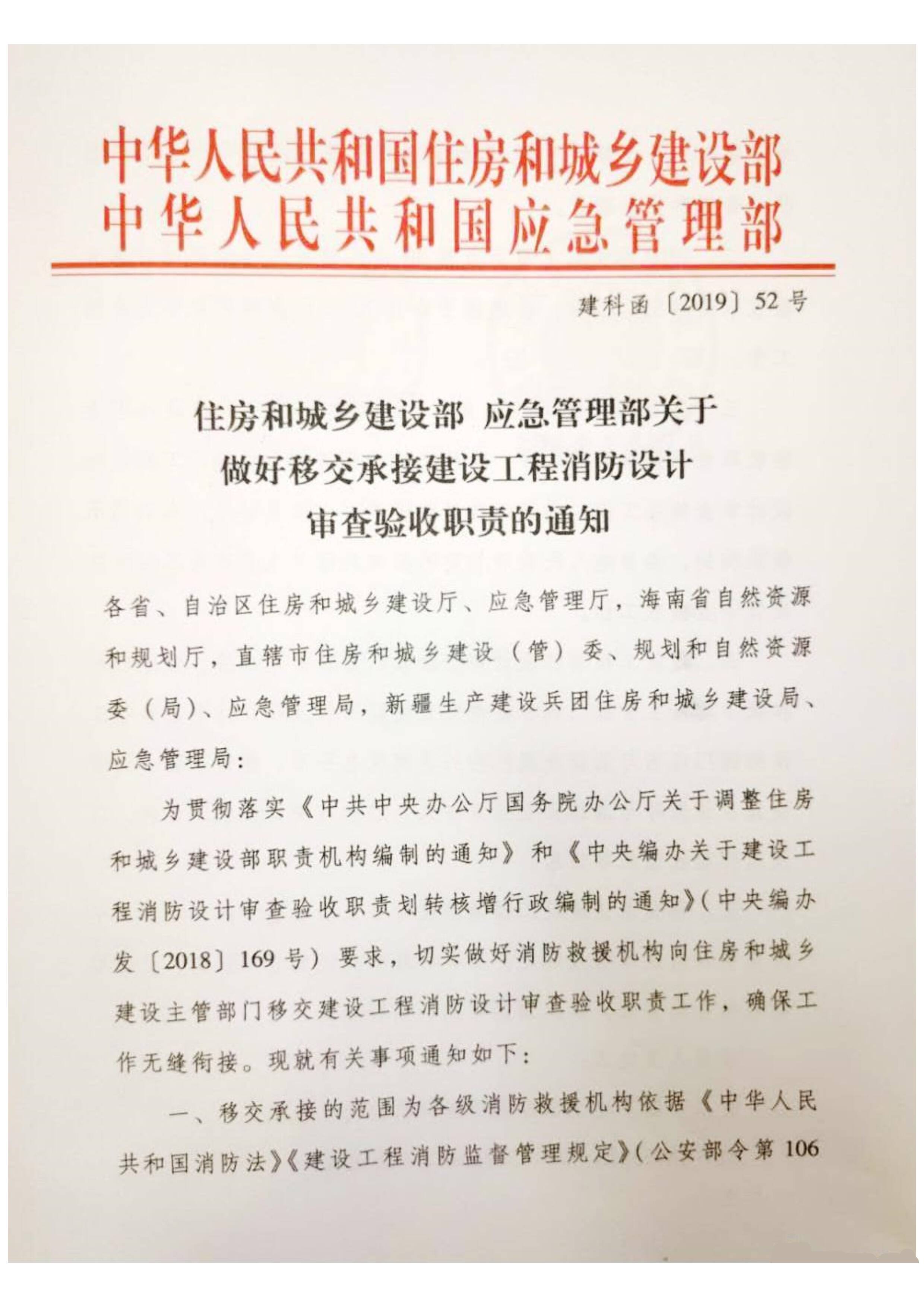 住房和城乡建设部应急管理部关于做好移交承接建设工程消防设计审查验收职责的通知(建科函201952号)[PDF]