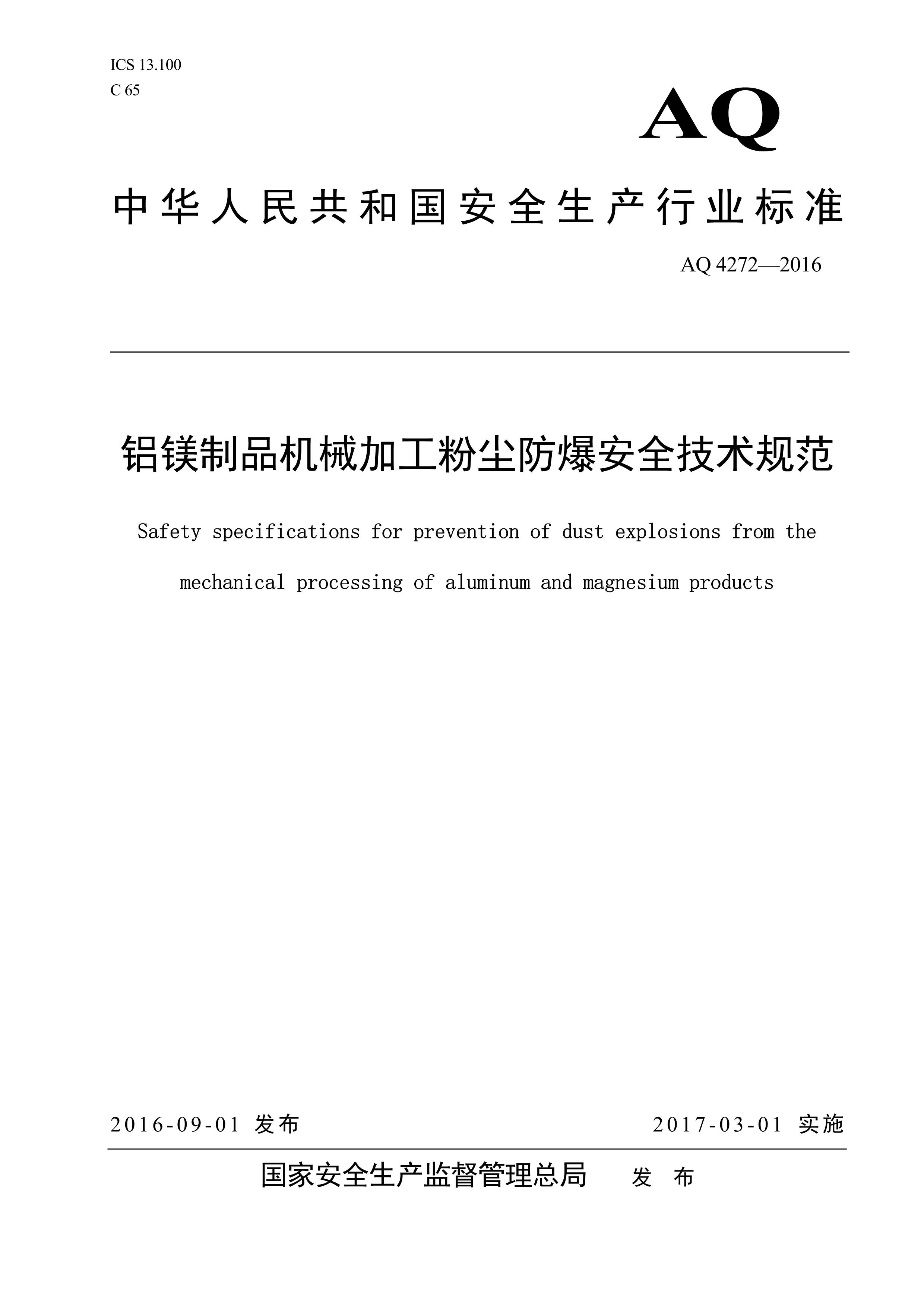 / 铝镁制品机械加工粉尘防爆安全技术规范[PDF]