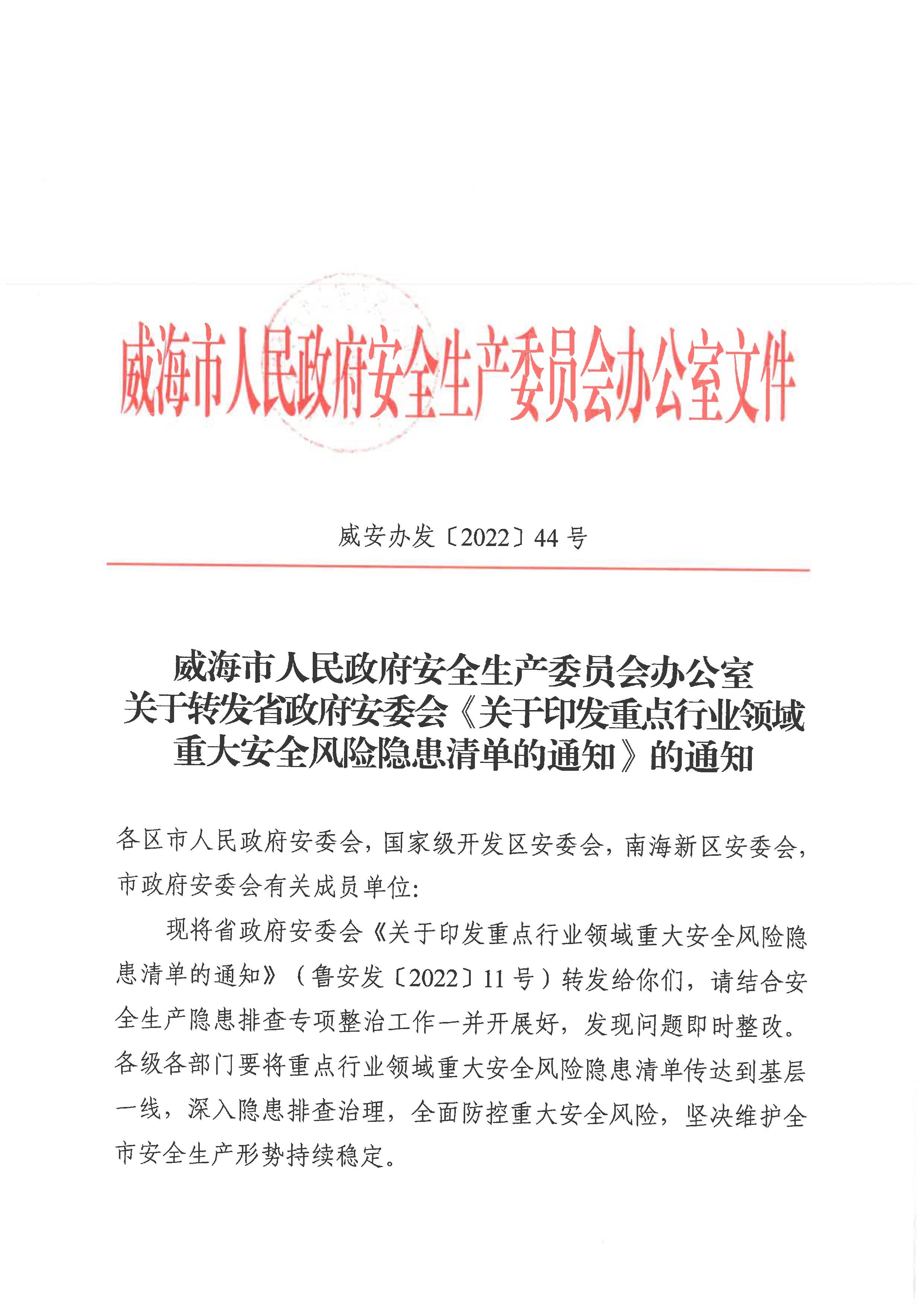 鲁安发202211号关于印发重点行业领域重大安全风险隐患清单的通知[PDF]
