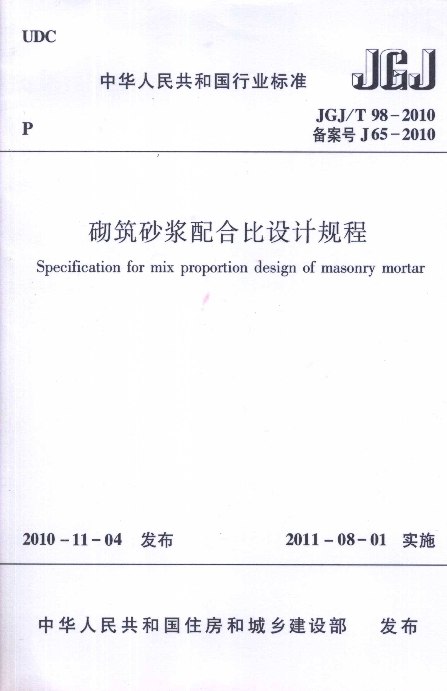/ 砌筑砂浆配合比设计规程JGJT98-2010[PDF]