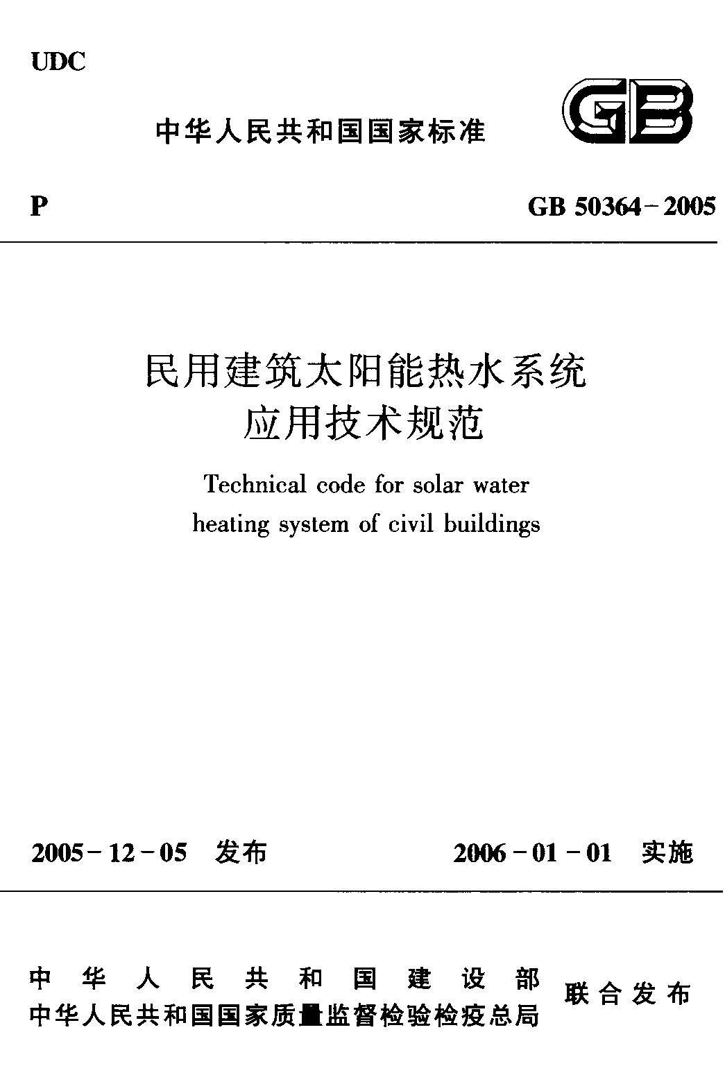民用建筑太阳能热水系统应用技术GB50364-2005[PDF]