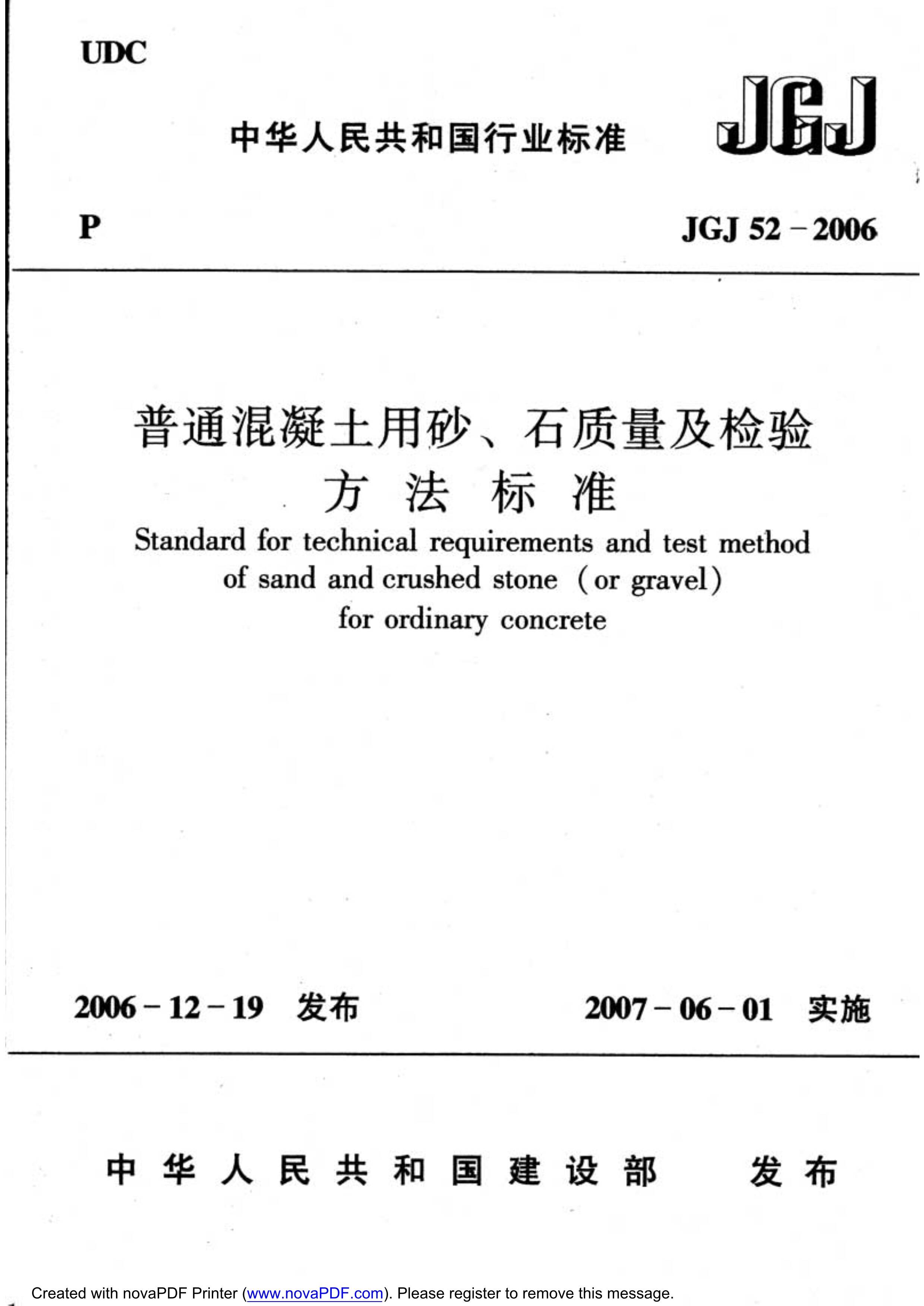 / 普通混凝土用砂,石质量及检验方法标准JGJ52-2006[PDF]