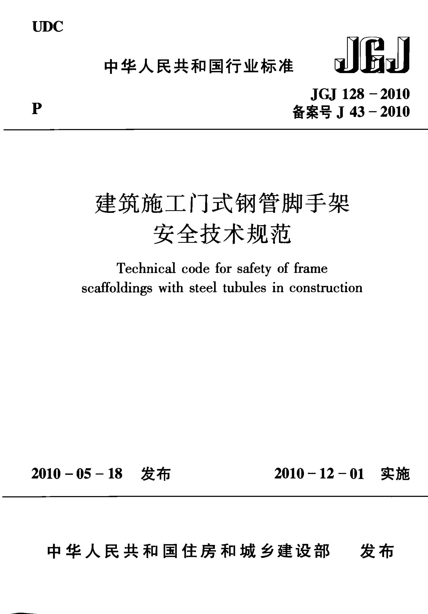 建筑施工门式钢管脚手架安全技术规范JGJ128-2010[PDF]