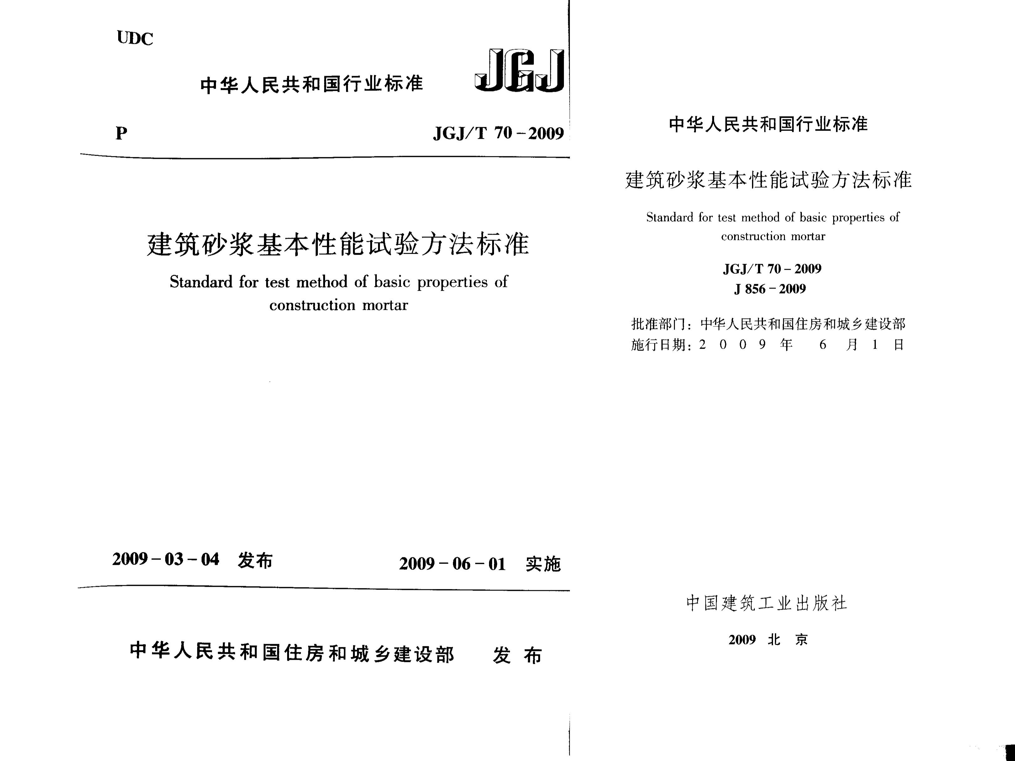/ 建筑砂浆基本性能试验方法JGJ70-2009[PDF]