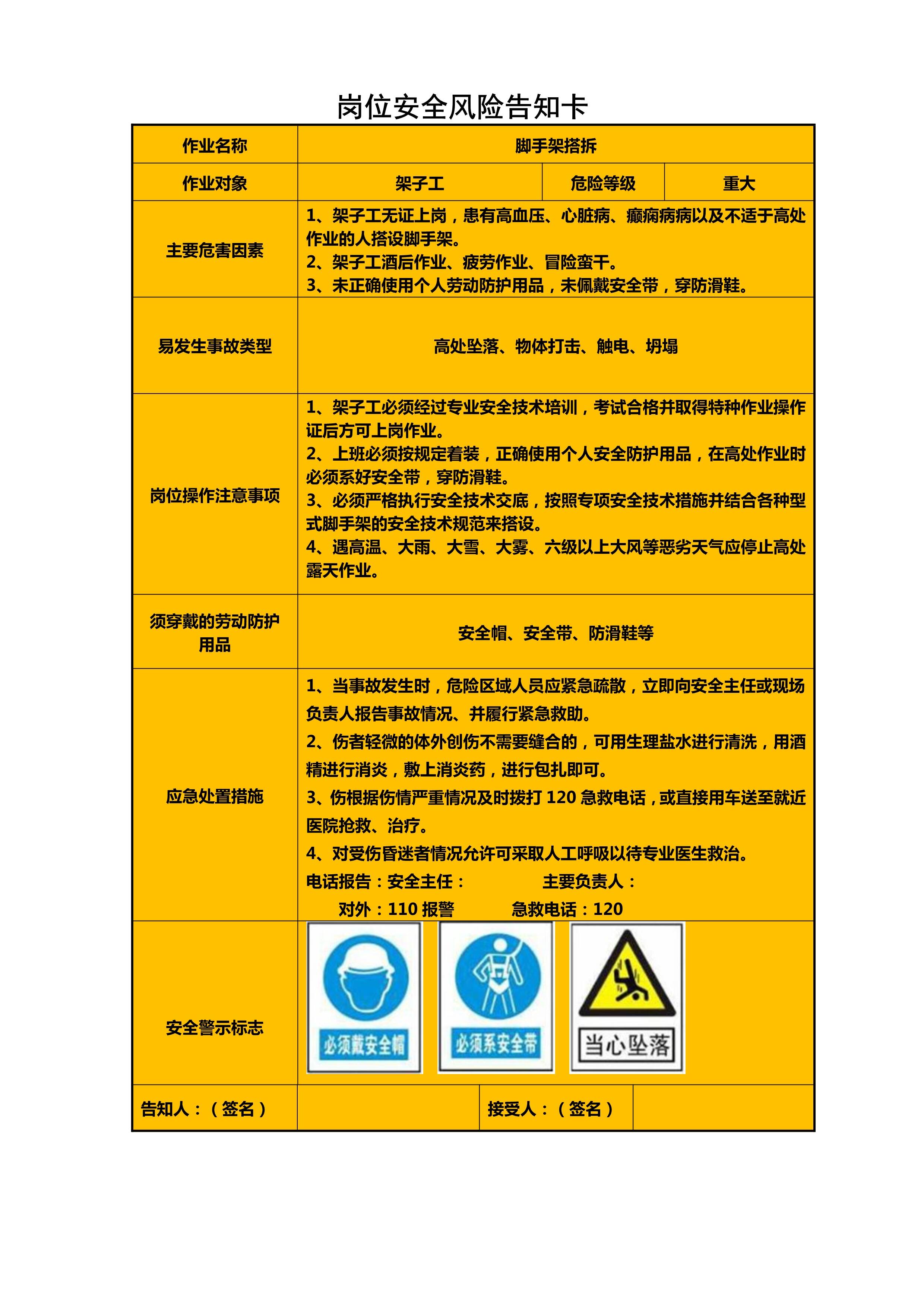 建筑施工各岗位安全风险告知卡[PDF]