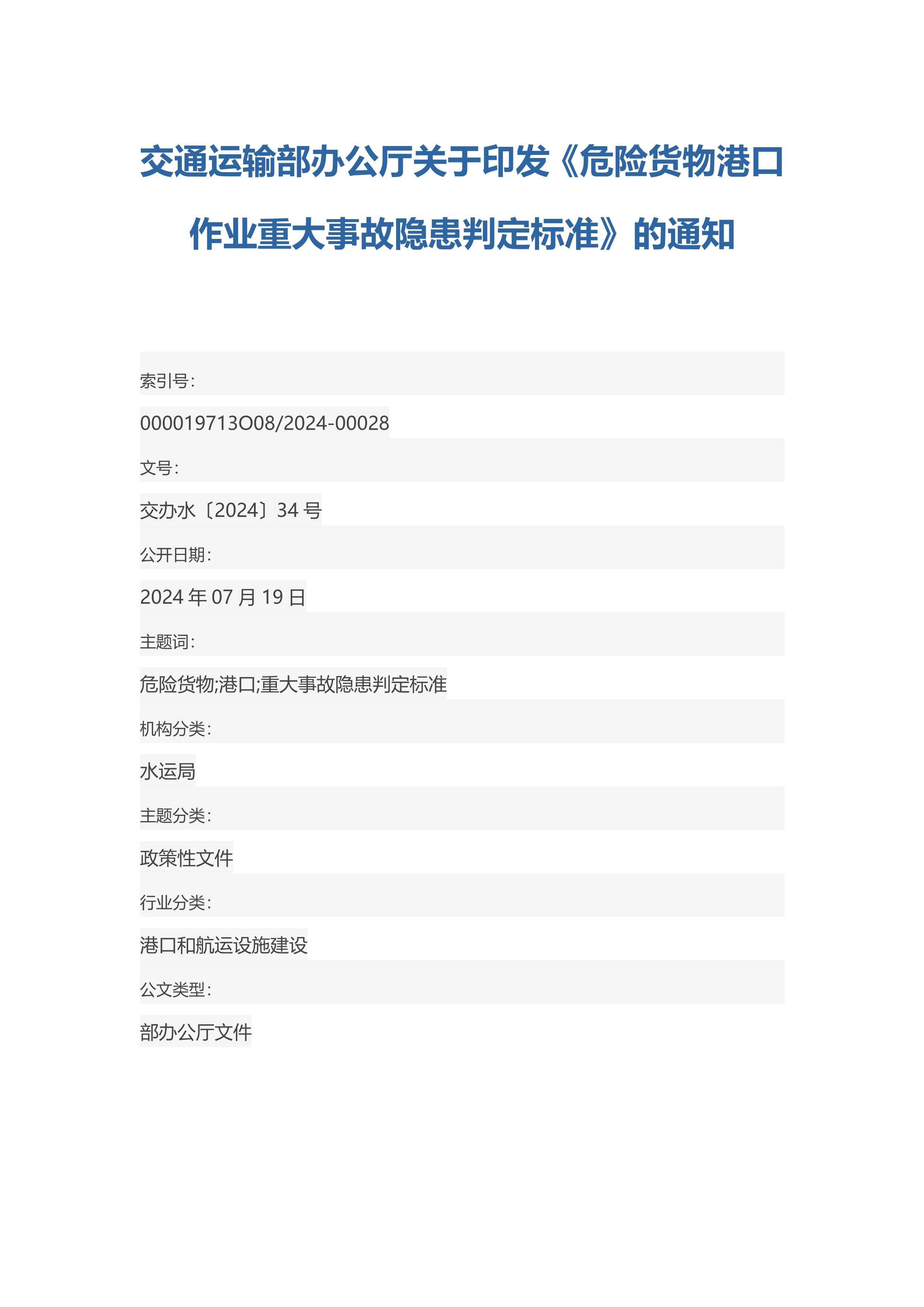 交通运输部办公厅关于印发《危险货物港口作业重大事故隐患判定标准》的通知[PDF]