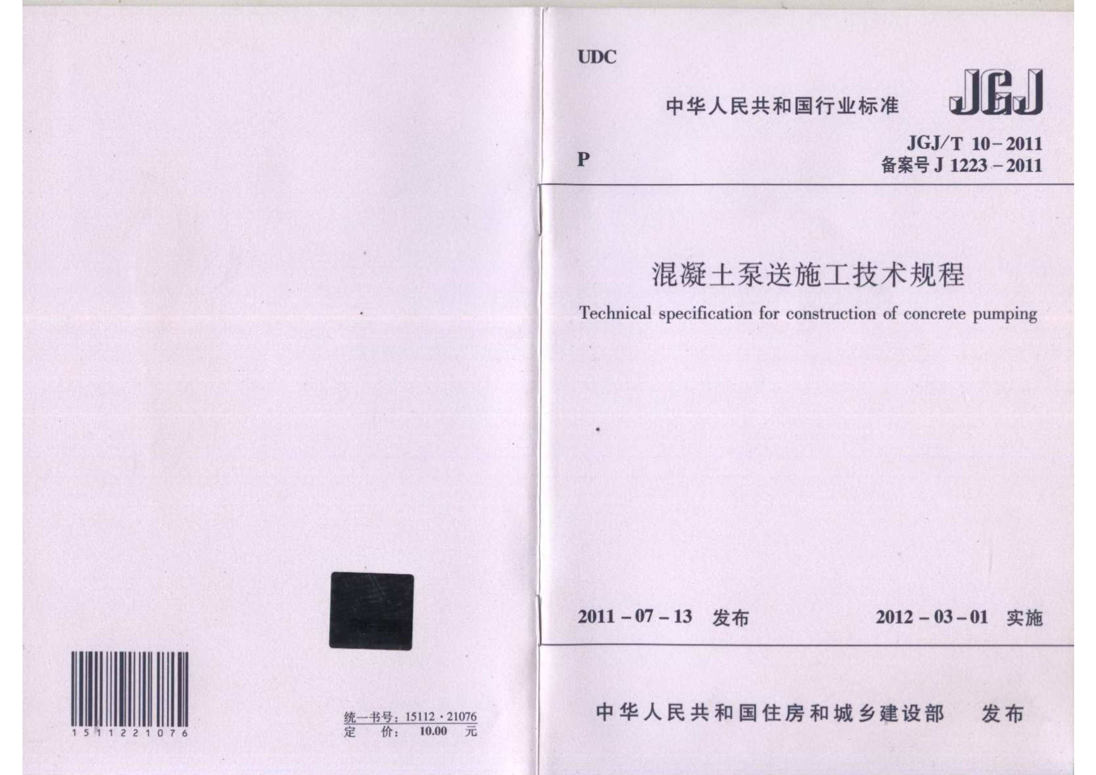 / 混凝土泵送施工技术规程JGJT2011[PDF]