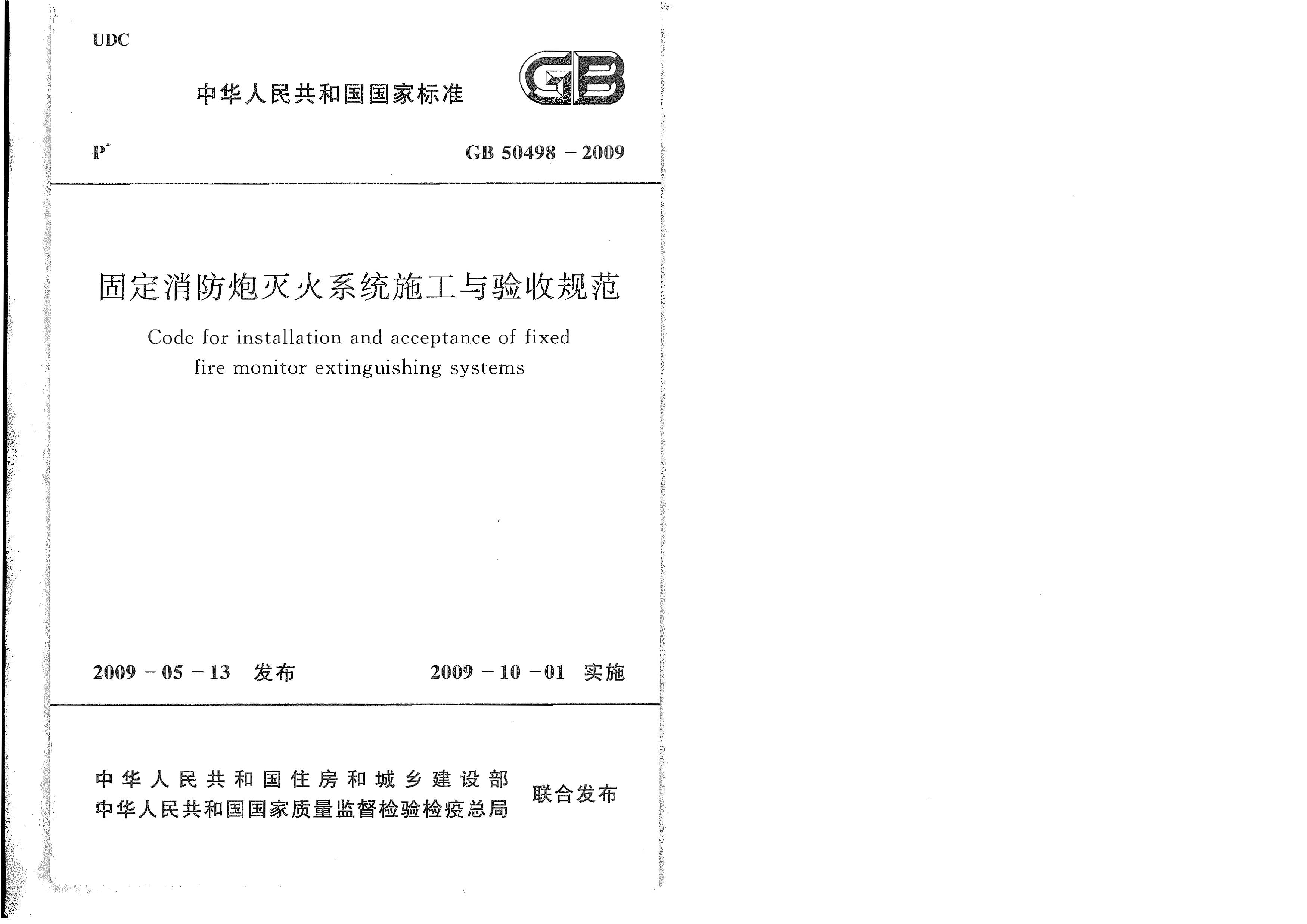 固定消防炮灭火系统施工与验收规范(包含条文说明)GB50498-2009[PDF]