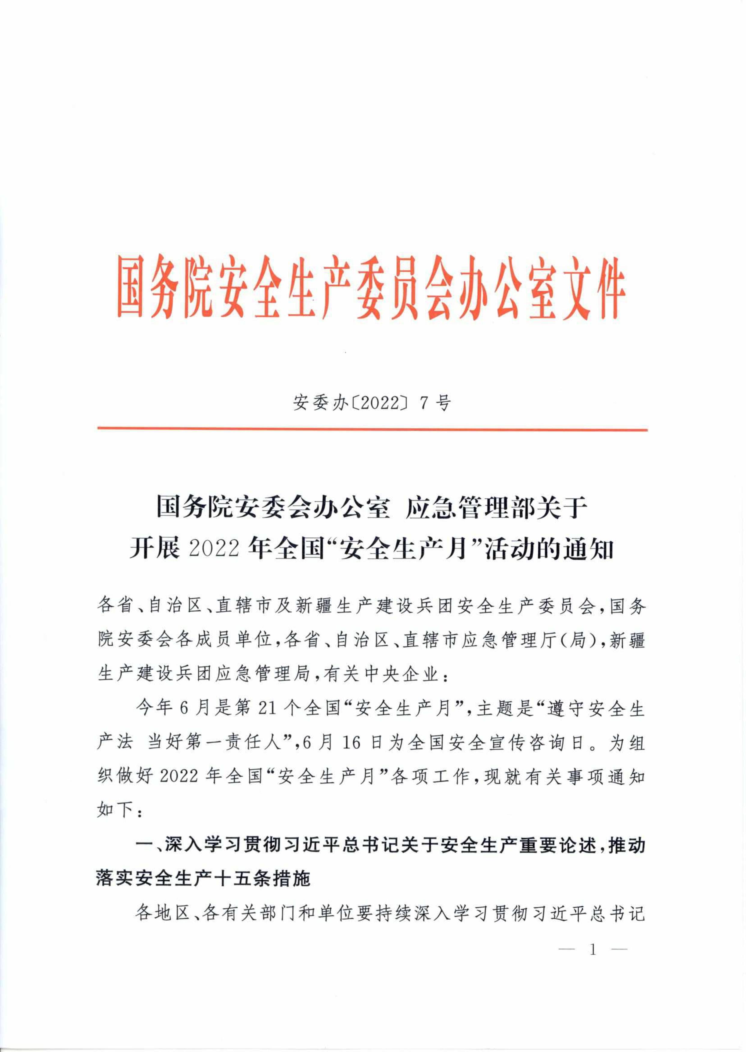 关于开展2022年全国安全生产月活动的通知[PDF]