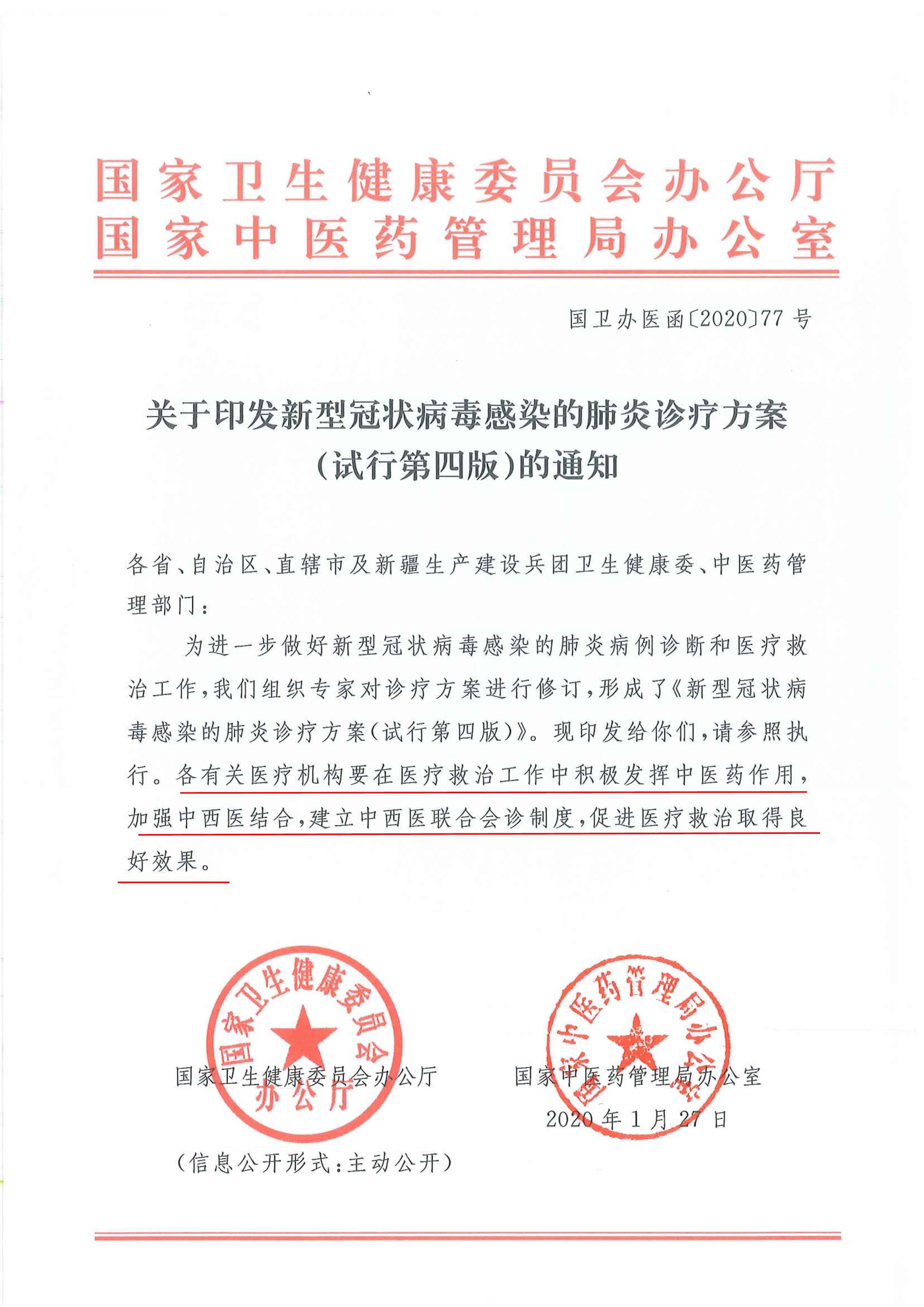关于印发新型冠状病毒感染的肺炎诊疗方案(试行第四版)的通知[PDF]