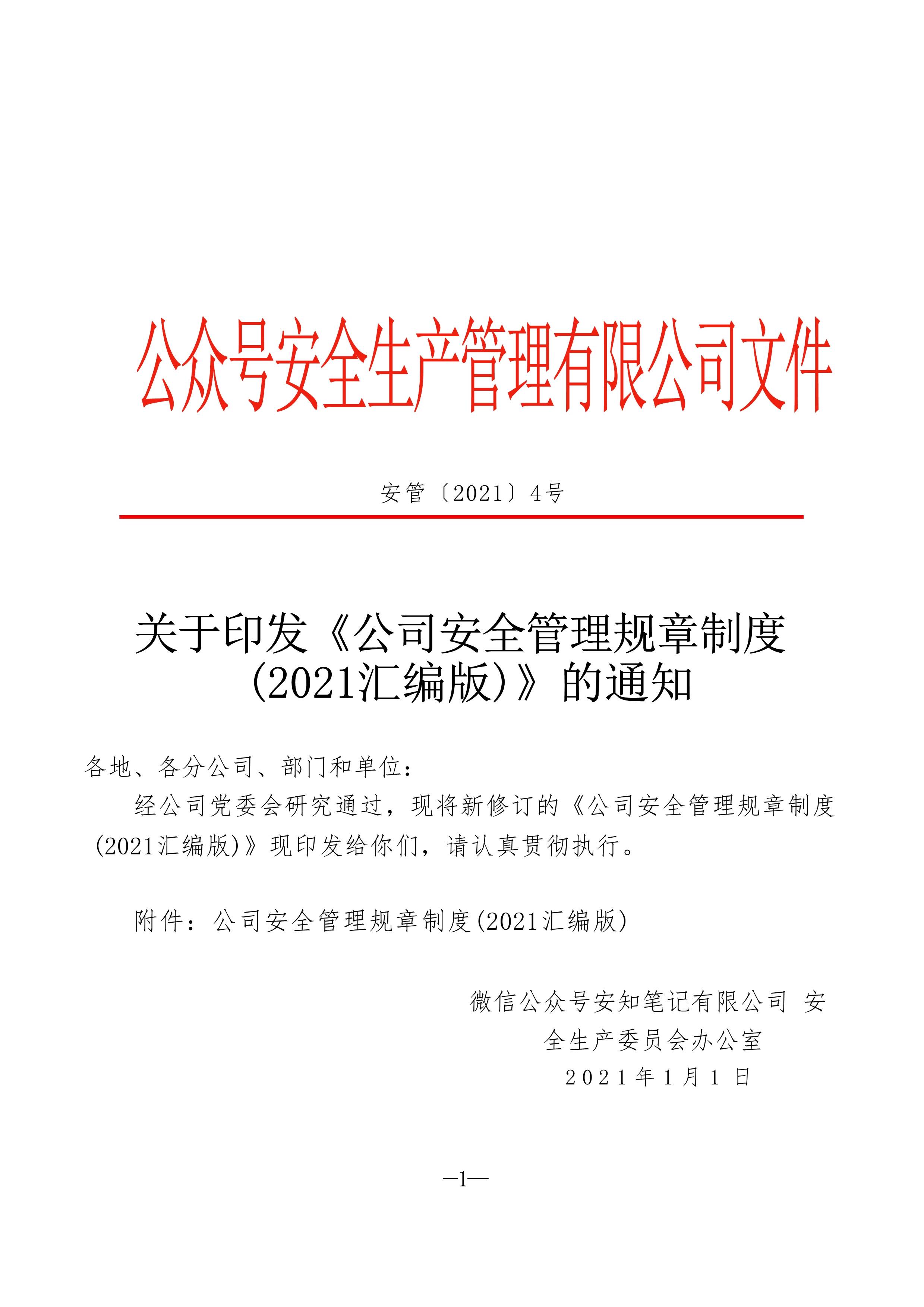 / 关于印发《公司安全管理规章制度2021汇编版》的通知[PDF]