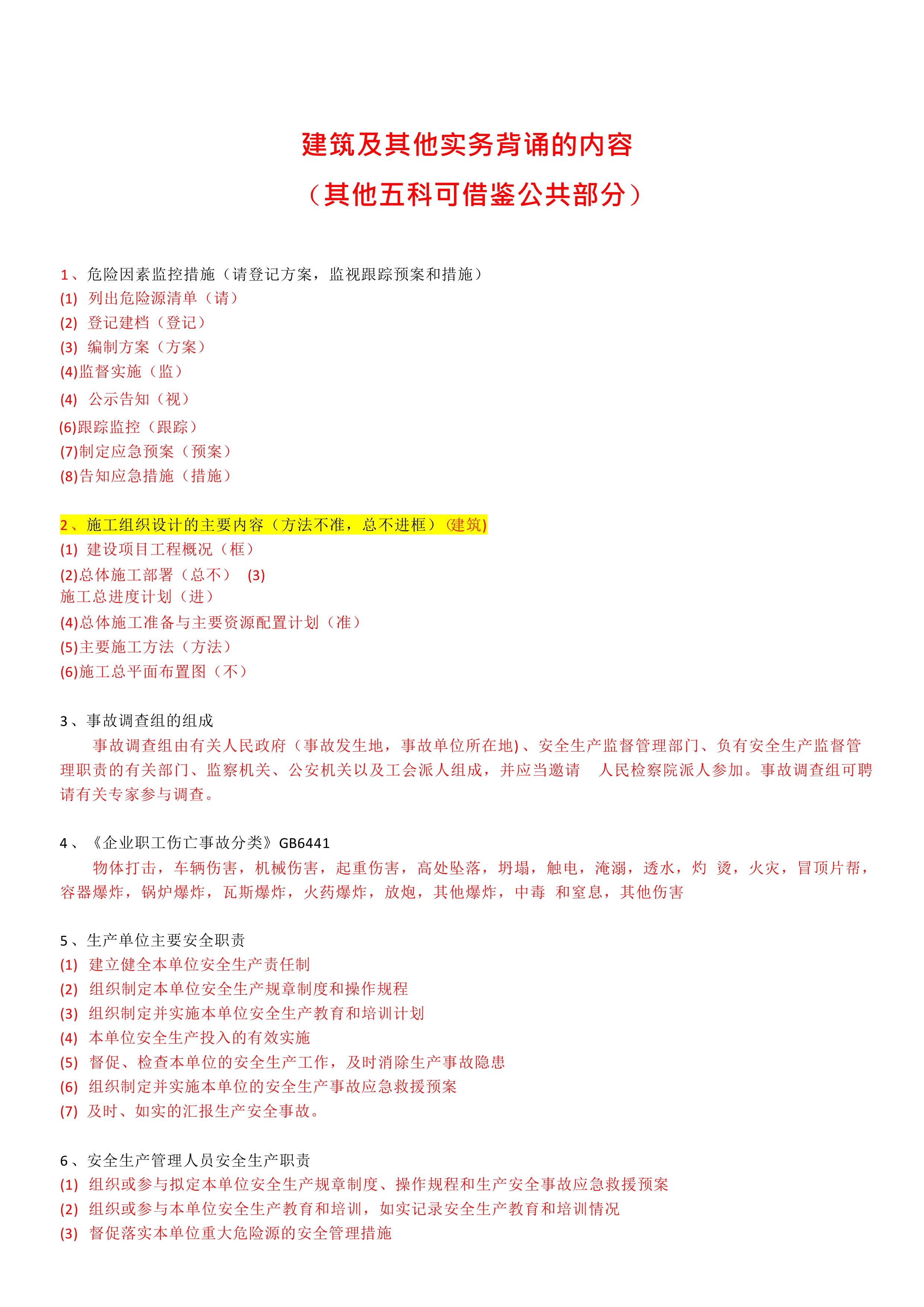 / 2019《安全生产专业实务》建筑及其他实务必背考点[PDF]