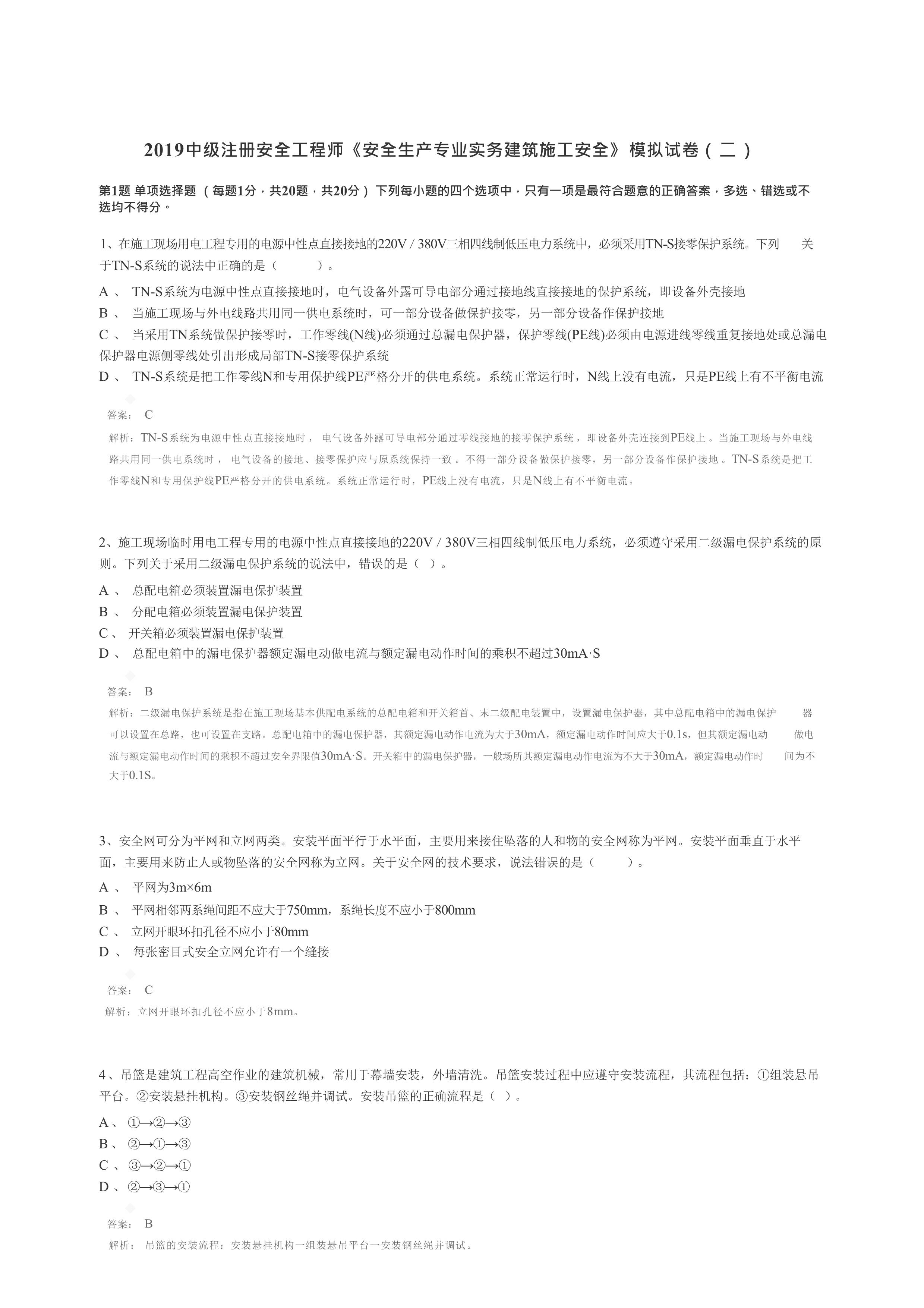 / 2019《安全生产专业实务》建筑施工安全模拟卷及答案[PDF]
