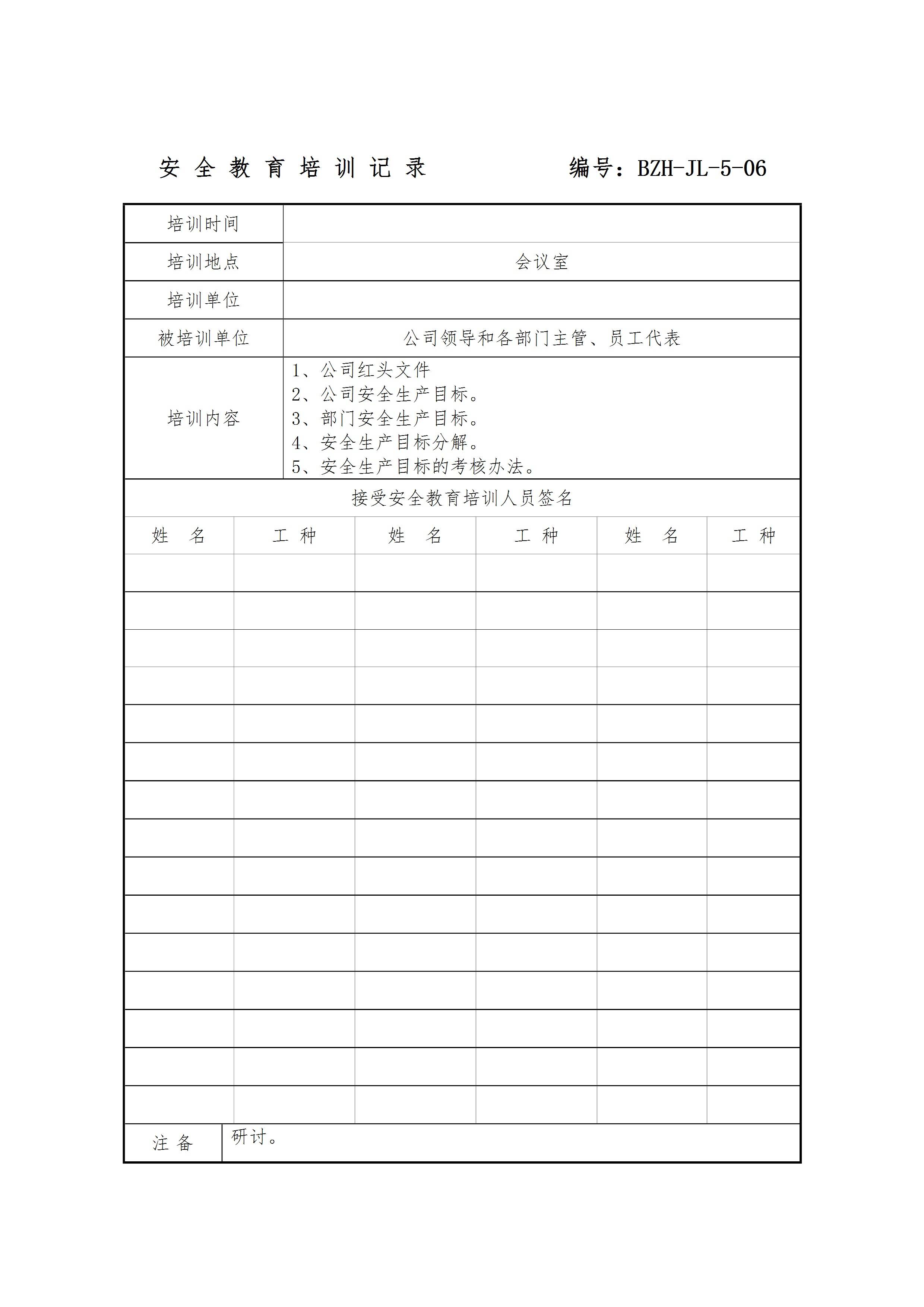 / 安全教育培训记录参考[文档]