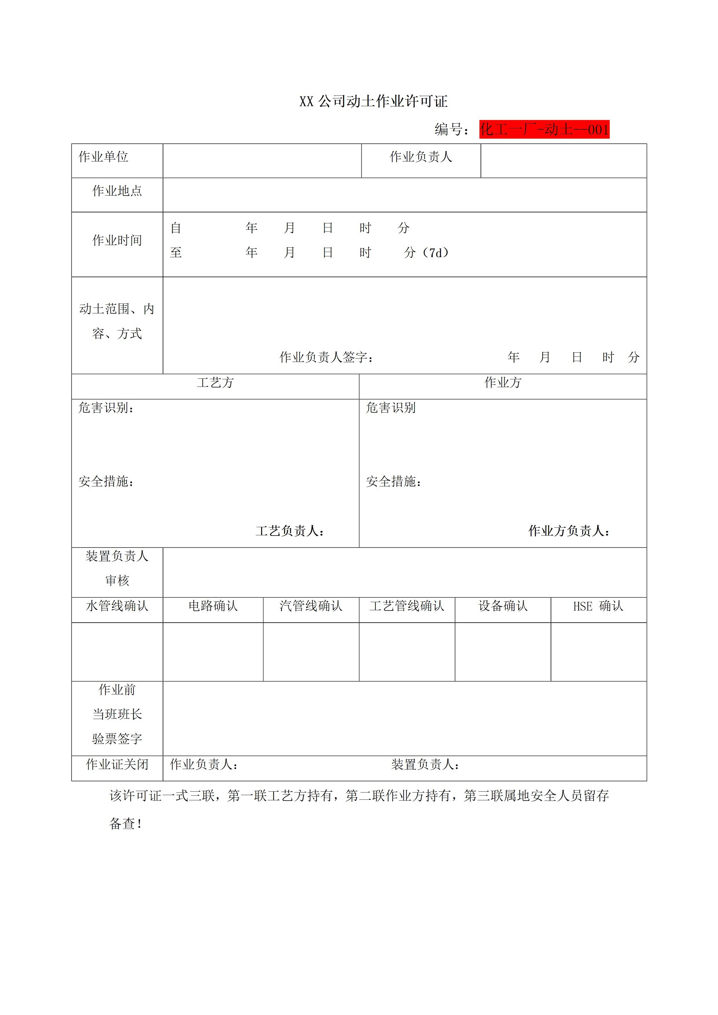 xx公司动土作业许可证[文档]